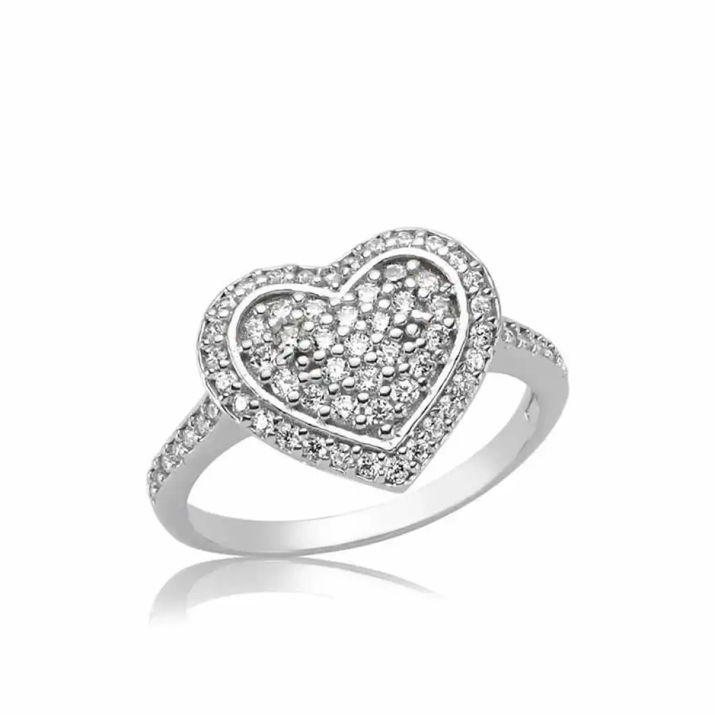 Aşkın ve sevginin simgesi gümüş bayan kalp yüzük ile sevdiğiniz kişiye hem anlamlı hem de güzel bir hediye verebilirsiniz. Özel günlerde de severek kullanabileceğiniz ışıl ışıl bu yüzük ile gecenin yıldızı olmaya ne dersiniz. 925 ayar gümüşten imal edilmiştir ve gümüş üzerine rodyum kaplama yapılmıştır. Rodyum kaplama yapılan gümüş modelleri parlaklığını uzun süre muhafaza eder, oksitlenmesi gecikir. Yüzük üzerinde bulunan taşlar zirkondur. Bayan yüzük modellerimizin tamamı el emeği ile üretilmiştir. Gümüş ve değerli taşlar nedeniyle belirtilen ortalama ürün ağırlığında ± %10 sapma olabilmektedir.