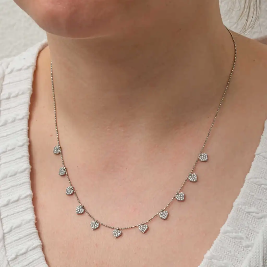Sevdiklerinize şans getirmesi için alabileceğiniz en şık modellerden biri gümüş şans kolyesidir. Sade kalpi tasarımıyla günlük hayatta rahatlıkla kullanabileceğiniz bu model 925 ayar gümüşten imal edilmiştir. Gümüş üzerine rodyum kaplama yapılmıştır. Rodyum kaplama yapılan gümüş şans kolye modelleri parlaklığını uzun süre muhafaza eder ve oksitlenmesi gecikir. Kolye üzerinde bulunan tüm taşlar zirkondur.Tüm gümüş bayan kolye modellerinde olduğu gibi gümüş şans kolye modeli de el emeği ile üretilmiştir. Gümüş ve değerli taşlar nedeniyle belirtilen ortalama ürün ağırlığında ± %10 sapma olabilmektedir.