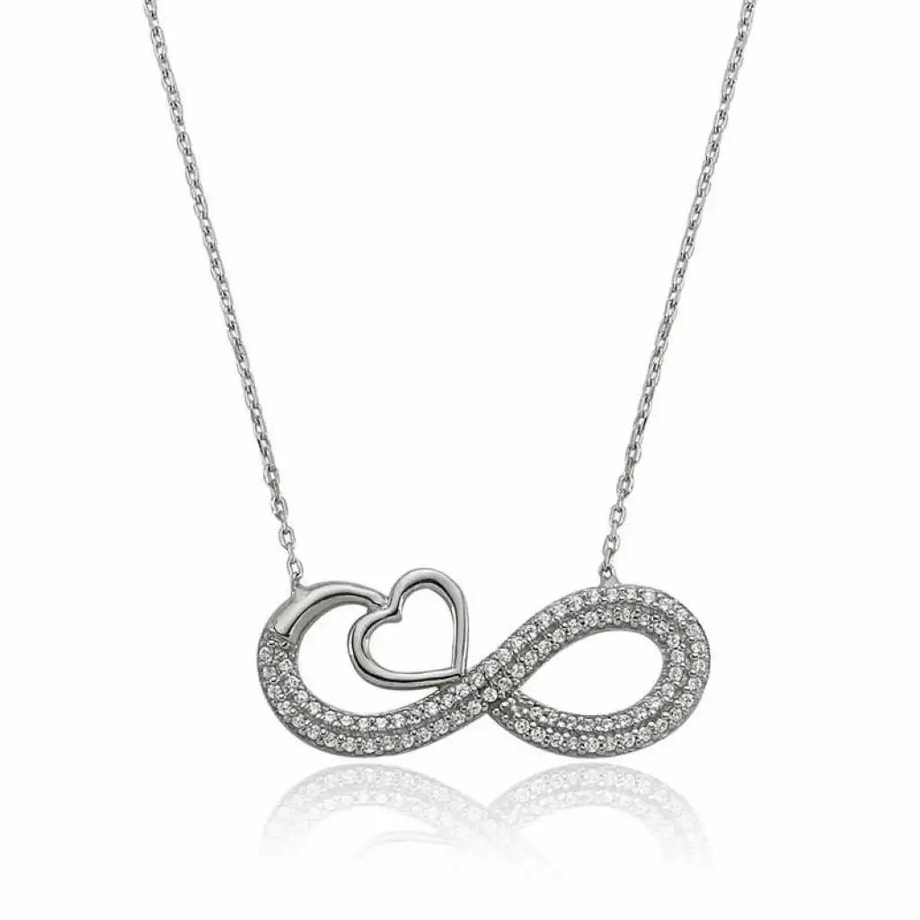 Gümüş Kalpli Sonsuzluk Bayan Kolye
