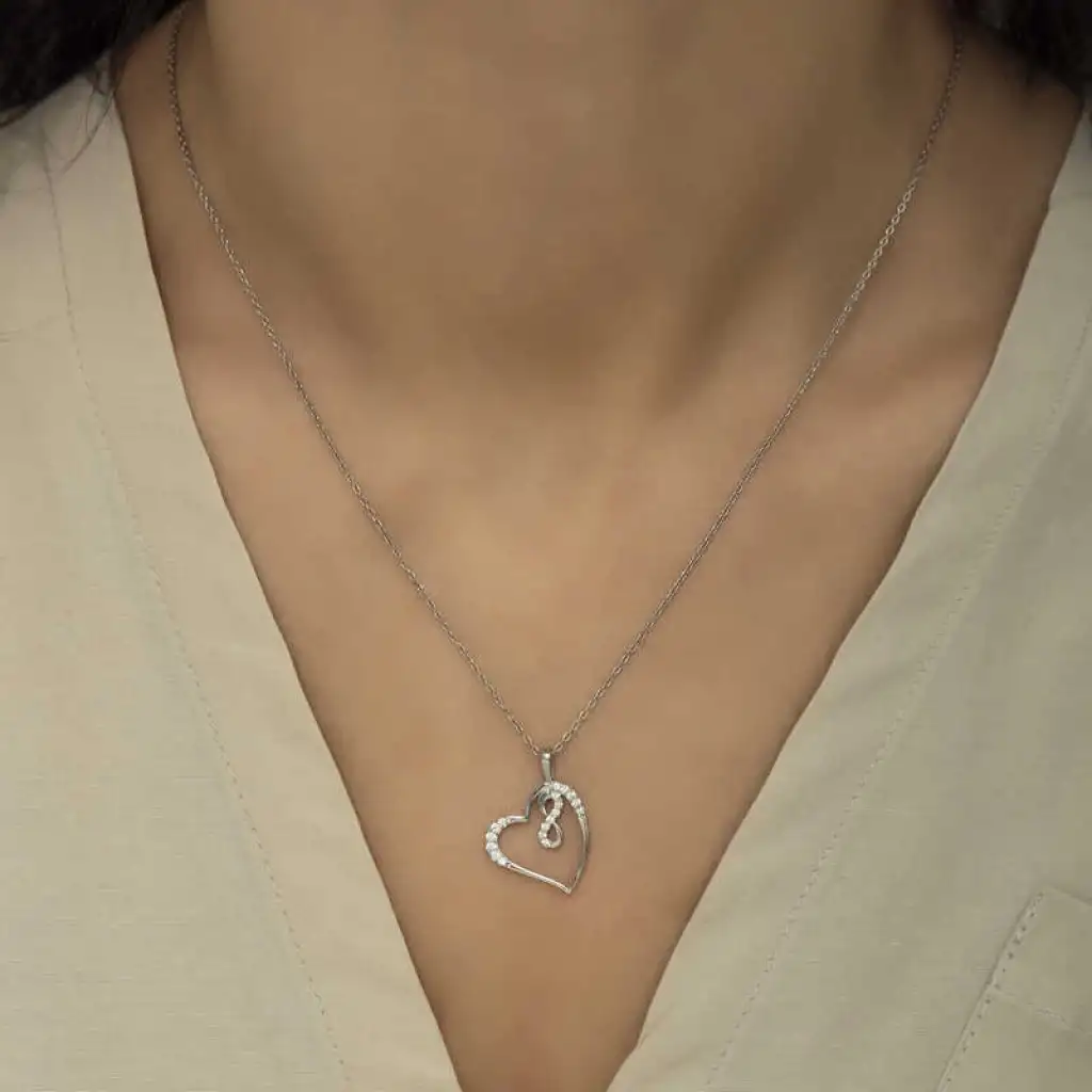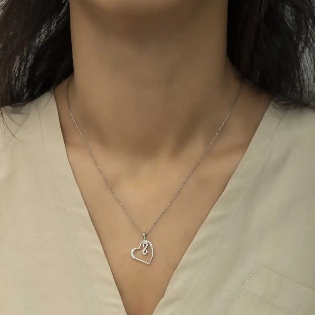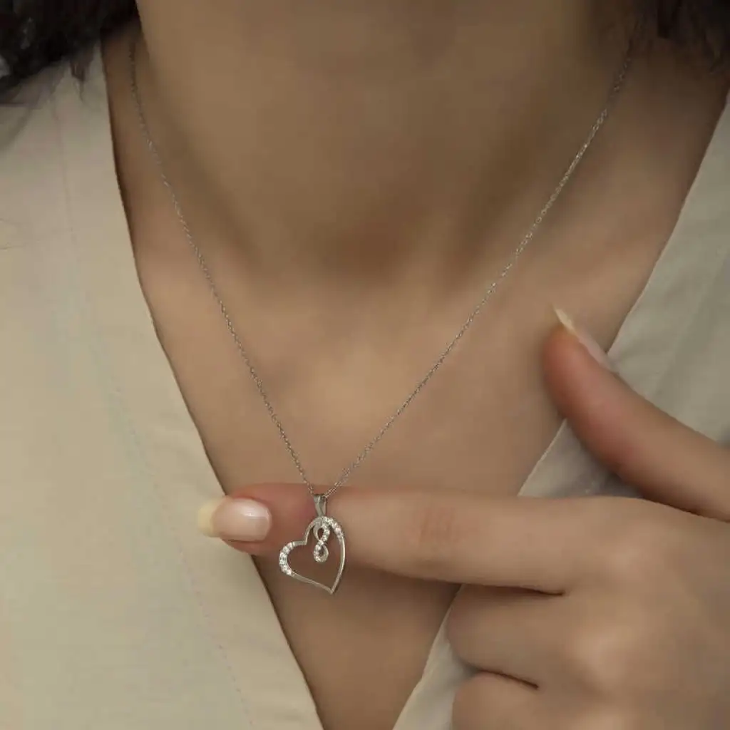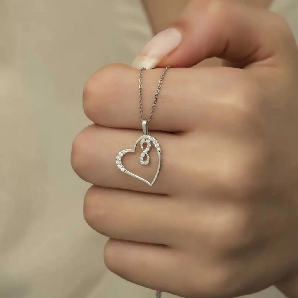 Gümüş Kalpli Sonsuzluk Bayan Kolye