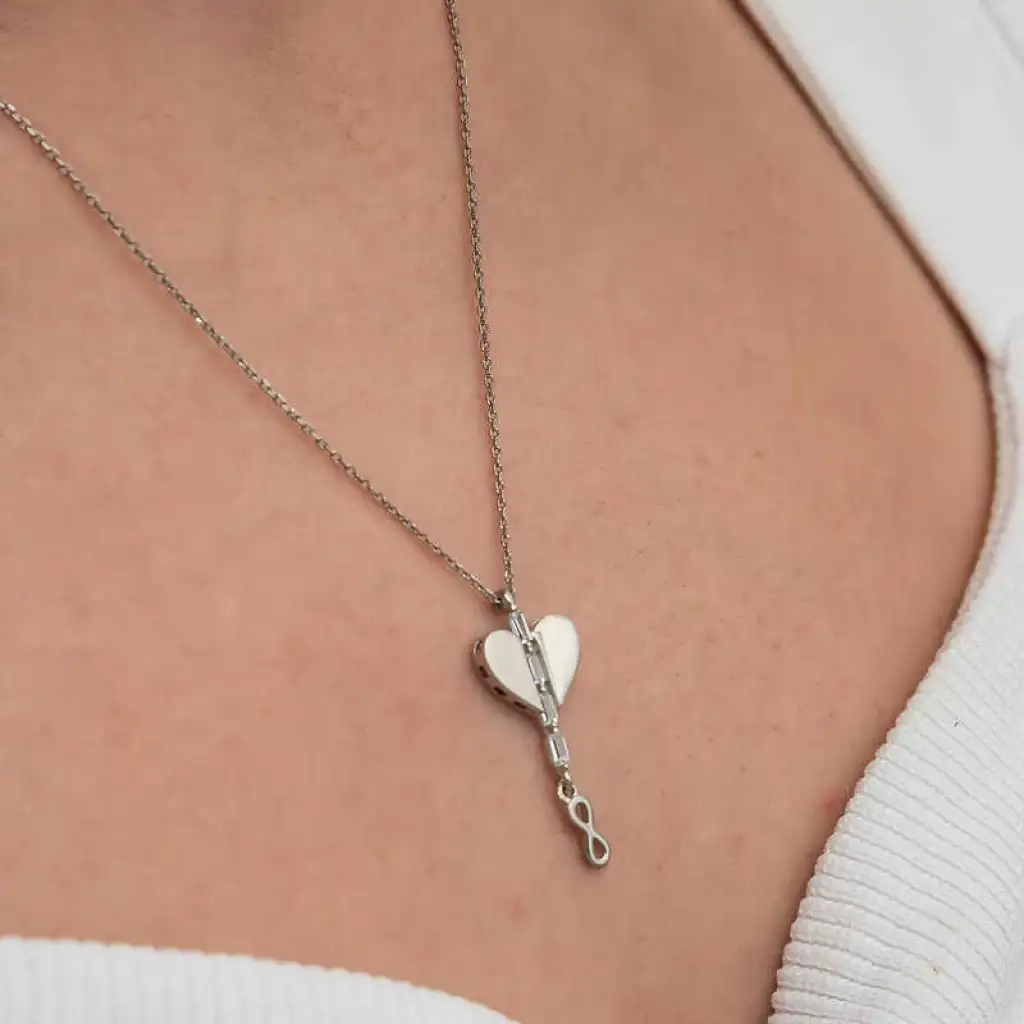 Gümüş Kalpli Sonsuzluk Kadın Kolye
