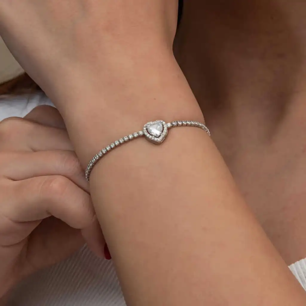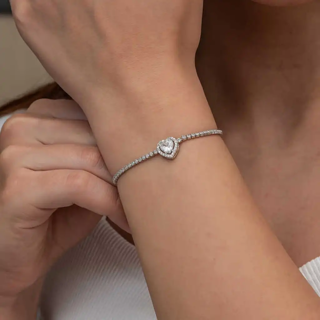 Zarif ve sade aksesuarlardan hoşlanan kadınların ilk tercihleri arasında bulunan su yolu bilekliklere, farklı tasarımlarla sahip olabilirsiniz. İnce ve titiz bir işçilikle tasarlanan su yolu bileklikleri dilediğiniz her ortamda tarzınızı bütünlemek için kullanabilirsiniz. Kıyafetlerinize ışıltı katmak ve bileğinizin zerafetini artırmak üzere su yolu bileklikleri tercih edebilirsiniz. Kalp şekli ve su yolu modeli, sevgi ve bağlılık simgeleriyle dolu, modern ve şık bir görünüm sağlar.. Sevdikleriniz için romantik ve anlamlı bir hediye arıyorsanız bu su yolu bileklikler ideal bir seçim olabilir. Her dönem sevilen bu sade ve şık bilekliği; doğum günü hediyesi, sevgililer günü hediyesi veya annelere hediye olarak özel günlerde tercih edebilirsiniz. Gümüş kalpli su yolu kadın bileklik, 925 ayar gümüşten imal edilmiştir. Gümüş bileklik üzerine rodyum kaplama yapılmıştır. Rodyum kaplama yapılan kadın bileklikler parlaklığını uzun süre muhafaza eder, oksitlenmesini geciktirir. Tüm gümüş kadın bileklik modellerinde olduğu gibi bu gümüş su yolu kadın bileklik de tamamı el emeği ile üretilmiştir. Gümüş ve değerli taşlar nedeniyle belirtilen ortalama ürün ağırlığında ± %10 sapma olabilmektedir.