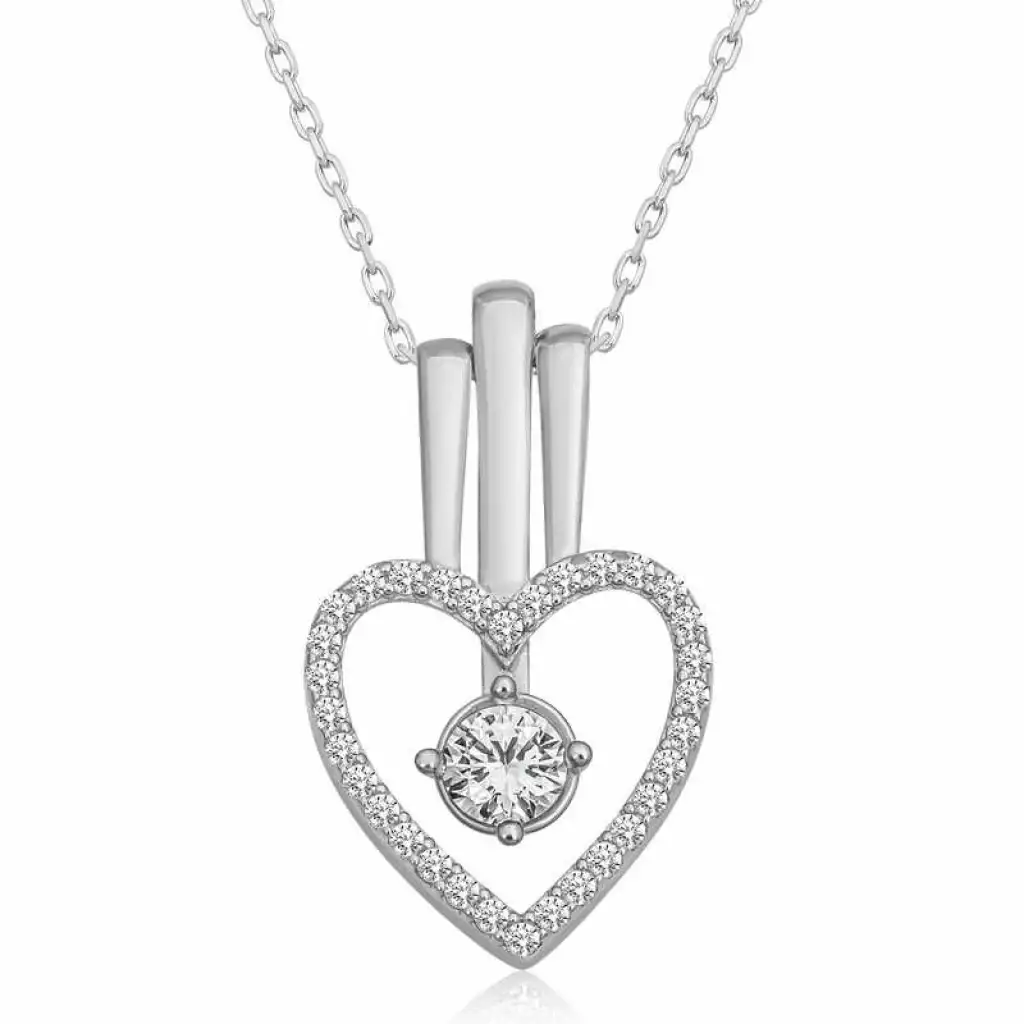 Gümüş Kalpli Tek Taş Kadın Kolye