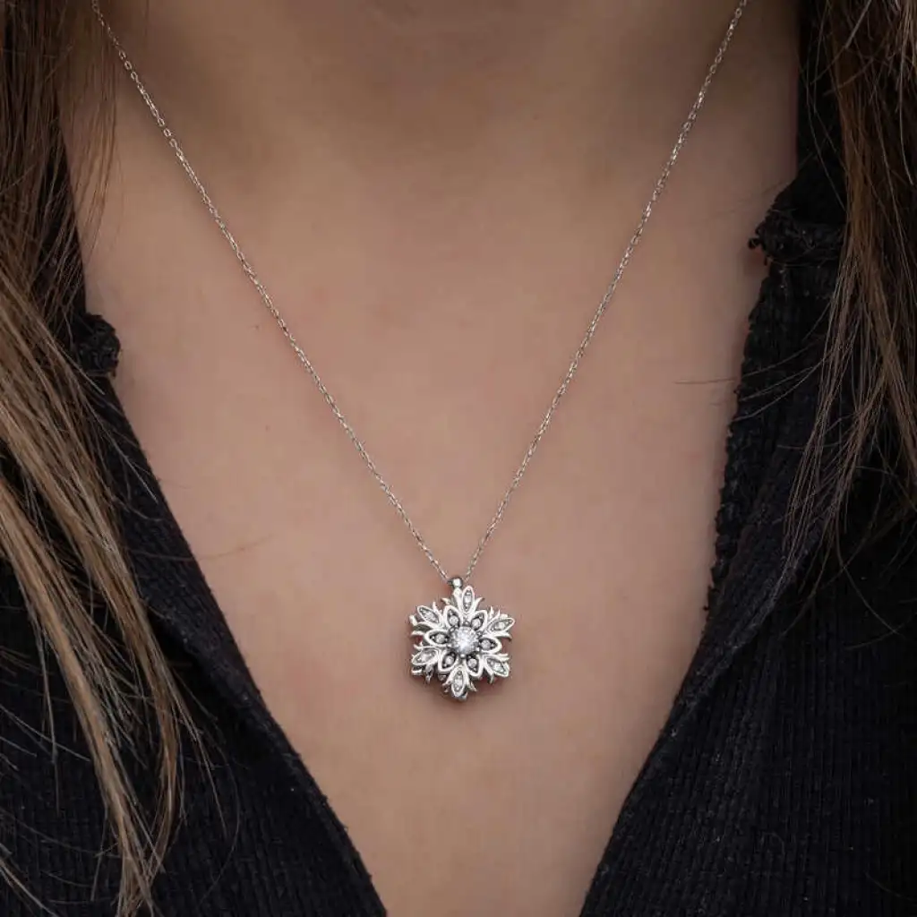 Gümüş Kar Tanesi Dönen Stres Kadın Kolye