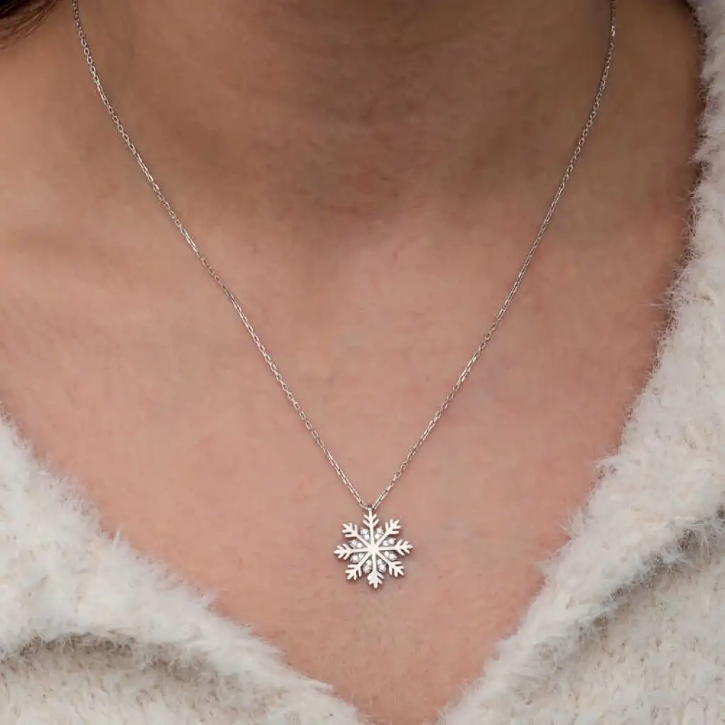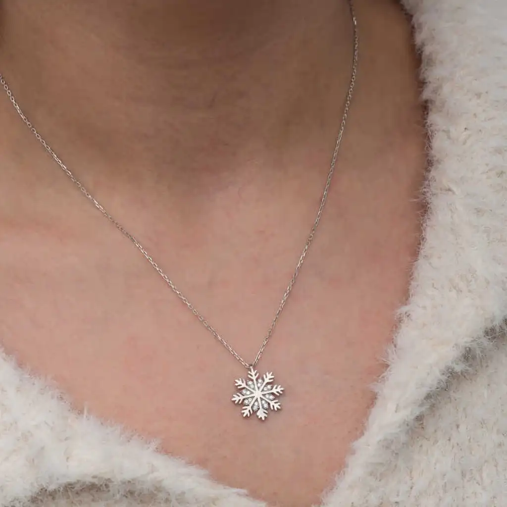 Kadınların ışıltısı, berraklığı kar tanesine benzetilip özel olarak tasarlanmıştır. Kar tanelerinin her birinin kadınlar gibi eşsiz ve ayrı kıymette olması onları özel kılan bir diğer özelliktir. Asilliği her dönemde dikkat çekmeyi başarmıştır. Bunun yanında insanların tıpkı kar taneleri gibi birbirlerine zarar vermeden de mutlu bir şekilde yaşayabileceklerini sembolize etmektedir.Bu şık kolye; doğum günü hediyesi, sevgililer günü veya özel günlerde tercih edilebilecek mükemmel bir seçenektir.Kolye; 925 ayar gümüşten imal edilmiştir. Gümüş üzerine rodyum kaplama yapılmıştır. Gümüş ve değerli taşlar nedeniyle belirtilen ortalama ürün ağırlığında ± %10 sapma olabilmektedir.