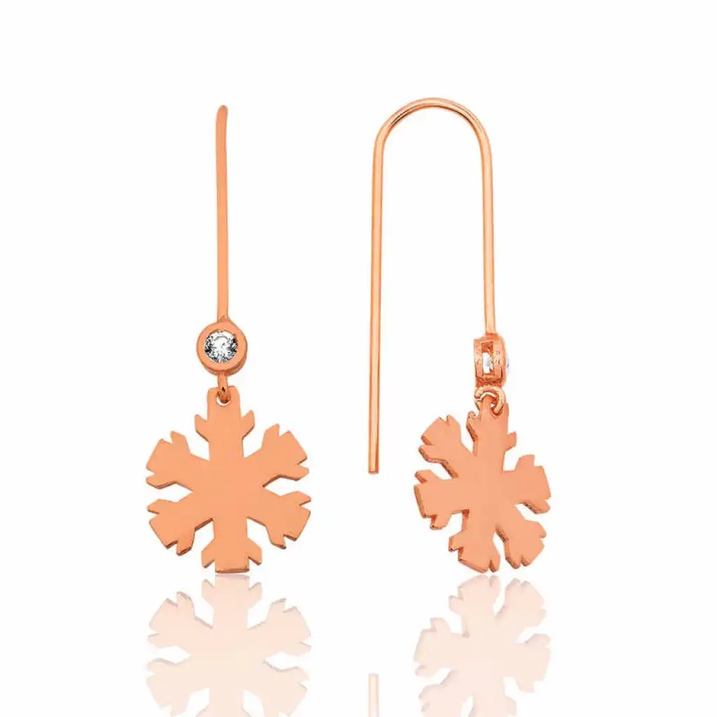 Doğanın mucizevi kristalleri her ne kadar şekilleri, özellikleri ve görünüşleri birbirine çok yakın olsa da, aslında her bir kar tanesinin eşsiz olduğu biliniyor. Hiçbir kar tanesi bir diğerine benzemiyor, her kar tanesinden aslında sadece bir tane var… Sevdiğiniz kişiye hediye ettiğiniz kar tanesi küpe ile onun sizin için eşsiz ve biricik olduğunu sessizce dillendirmiş oluyorsunuz. Sizlerde her zevke uygun kar tanesi küpe ile şıklığınıza ışıltı katın... 925 ayar gümüşten imal edilmiştir. Gümüş üzerine rose kaplama yapılmıştır. Rose altın kaplama yapılan gümüş küpe modelleri parlaklığını uzun süre muhafaza eder, gümüş rengini pembe renge dönüştürür ve oksitlenmeyi geciktirir. Üzerinde bulunan taşlar zirkondur. Ürünlerimizin tamamı el emeği ile üretilmiştir. Gümüş ve değerli taşlar nedeniyle belirtilen ortalama ürün ağırlığında ± %10 sapma olabilmektedir.