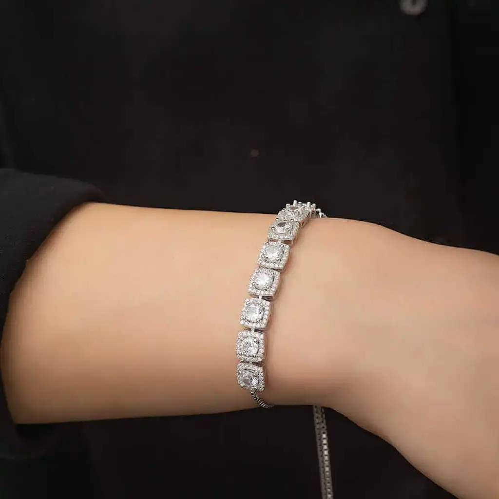 Gümüş Kare Baget Taşlı Asansörlü Bileklik