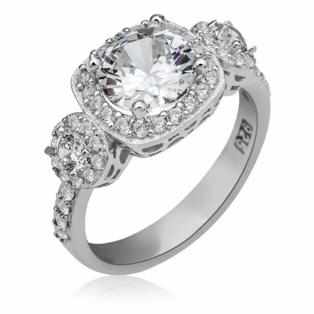 Gümüş Kare Montür Tek Taş Kare Yüzük