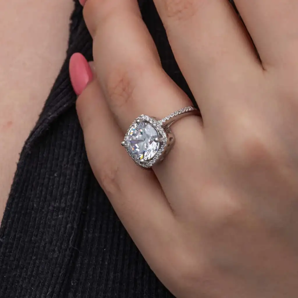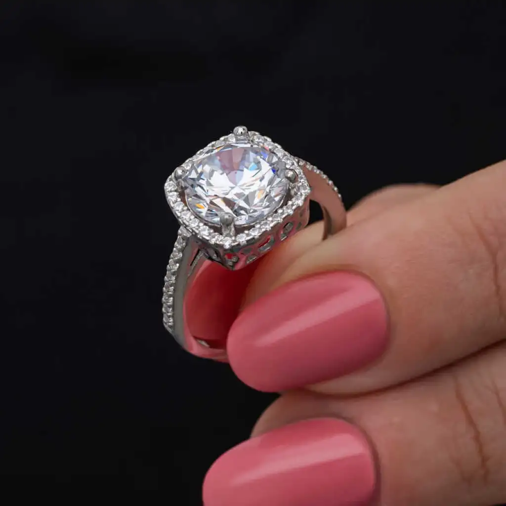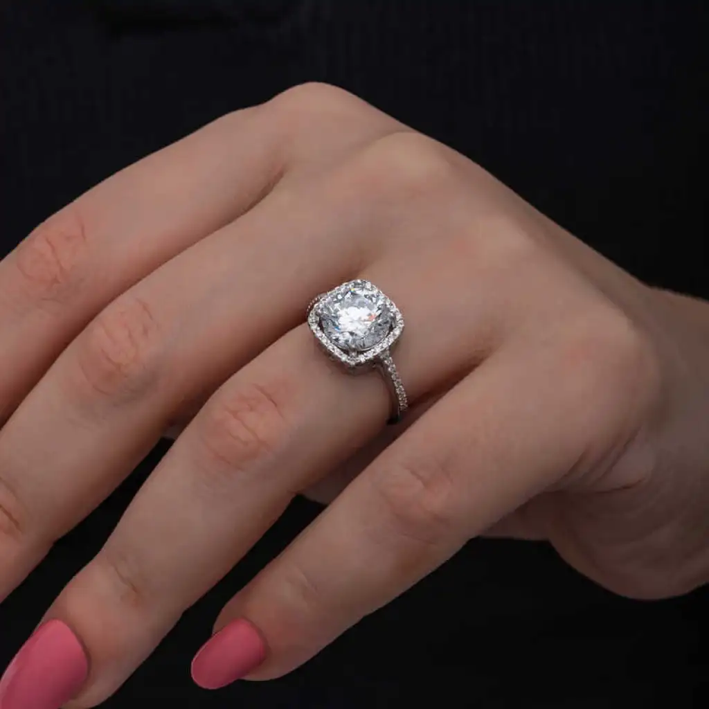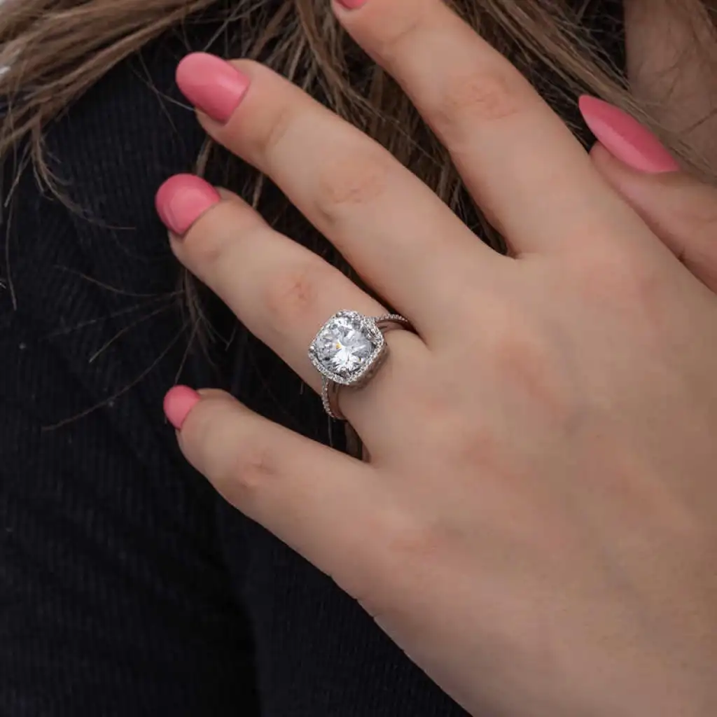 Gümüş Kare Montür Tek Taş Kadın Yüzük