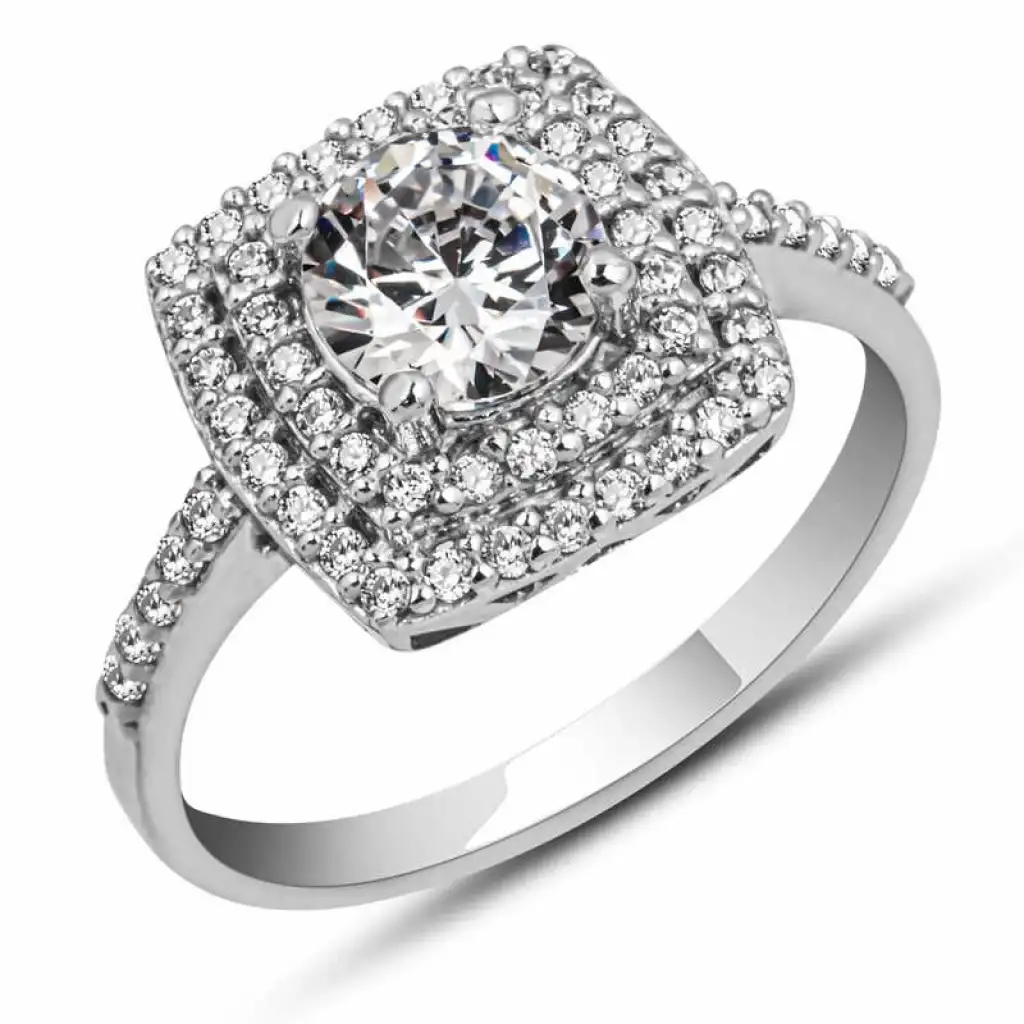 Gümüş Kare Montür Tek Taş Kadın Yüzük