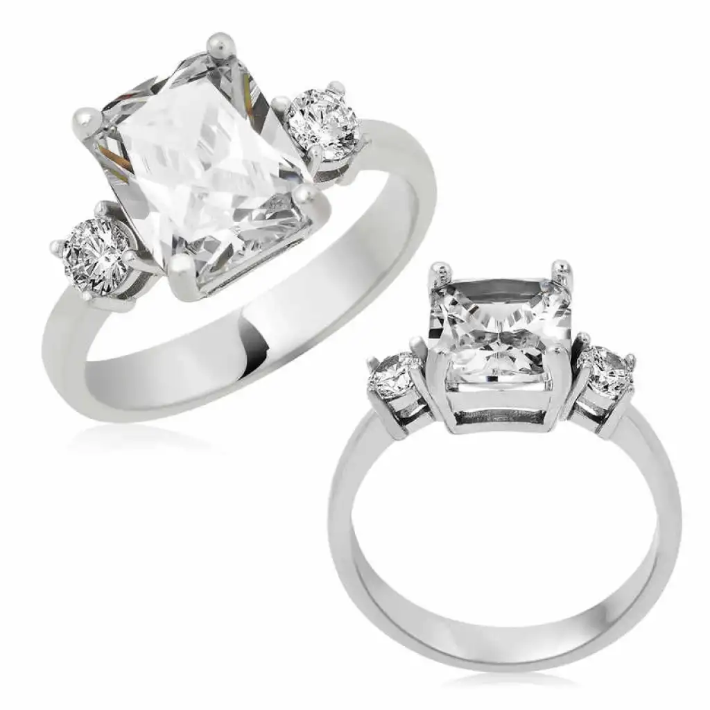 Gümüş Kare Montür Üç Taş Bayan Yüzük