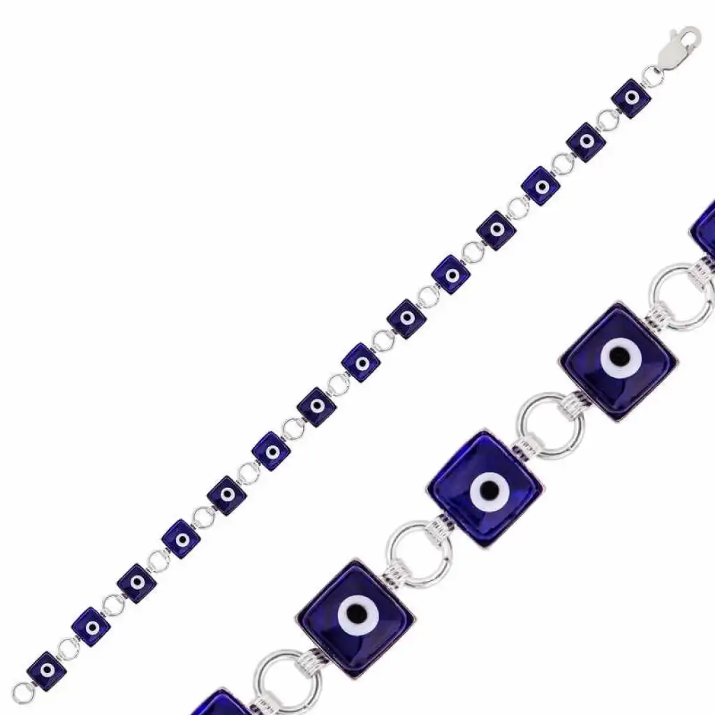 Nazar boncuğunu insanlar uzun yıllardan beri kötü bakıştan korunmak için kullanmışlardır. Kötü bakışların insanlar üzerinde olumsuz etki oluşturmasına karşı bir önlemdir nazar boncuğu… Bu sebeptendir ki insanlar sevdiklerini korumak için nazar boncuğu takmaktadır. Bu nazar bileklik de şıklığı ve zarafeti yansıtıyor. Her dönem sevilen ve şıklığından ödün vermeyen bu modeli; doğum günü hediyesi, sevgililer günü hediyesi veya annelere hediye olarak özel günlerde tercih edebilirsiniz. Kare nazar bayan bileklik, 925 ayar gümüşten imal edilmiştir. Gümüş üzerine rodyum kaplama yapılmıştır. Rodyum kaplama yapılan gümüş bayan bileklikler parlaklığını uzun süre muhafaza eder, oksitlenmesi gecikir. Üzerinde bulunan taşlar camdır. Tüm gümüş bayan bilekliklerinde olduğu gibi bu gümüş kare nazar bayan bileklik modeli de tamamı el emeği ile üretilmiştir. Gümüş ve değerli taşlar nedeniyle belirtilen ortalama ürün ağırlığında ± %10 sapma olabilmektedir.