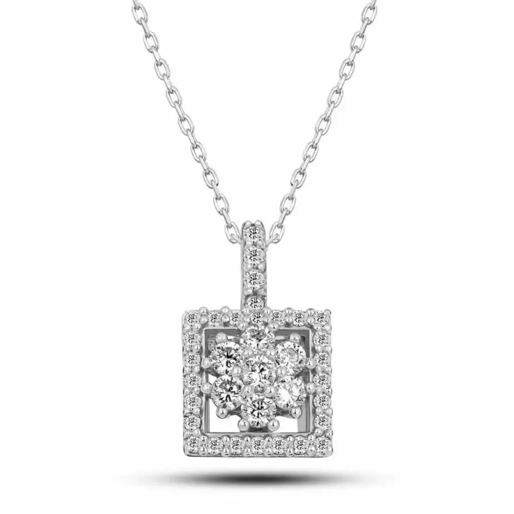 Gümüş Kare Zirkon Taşlı Kadın Kolye