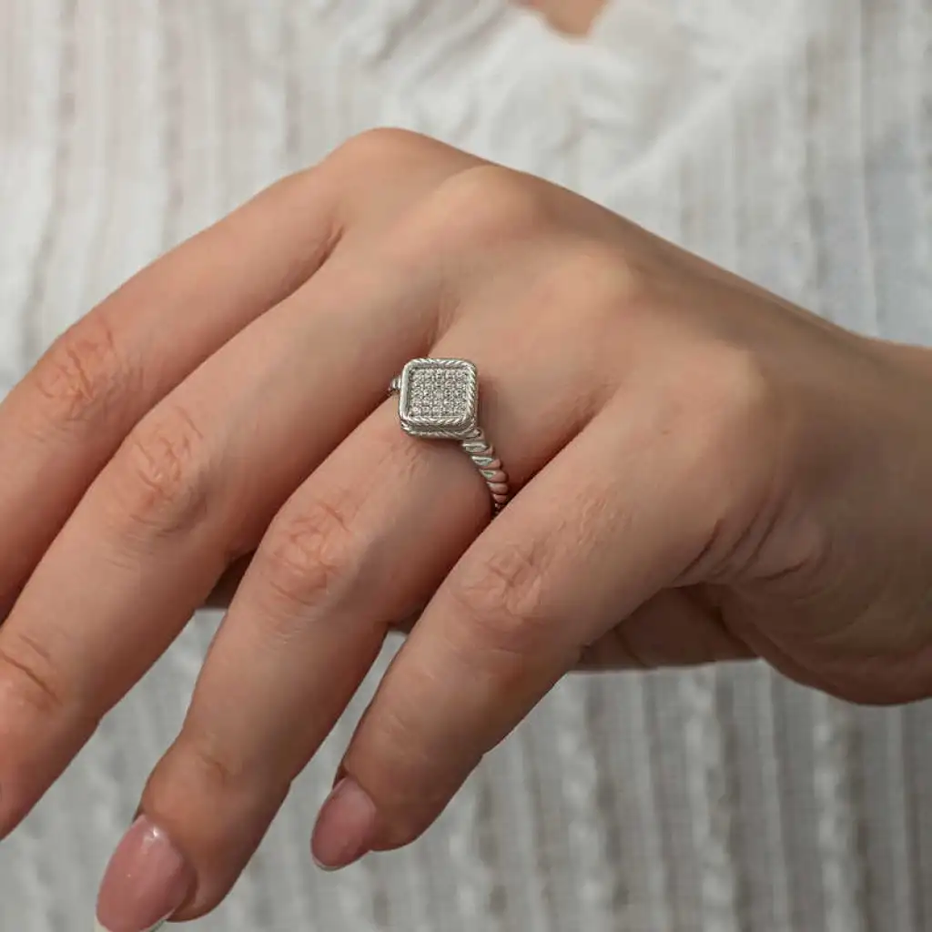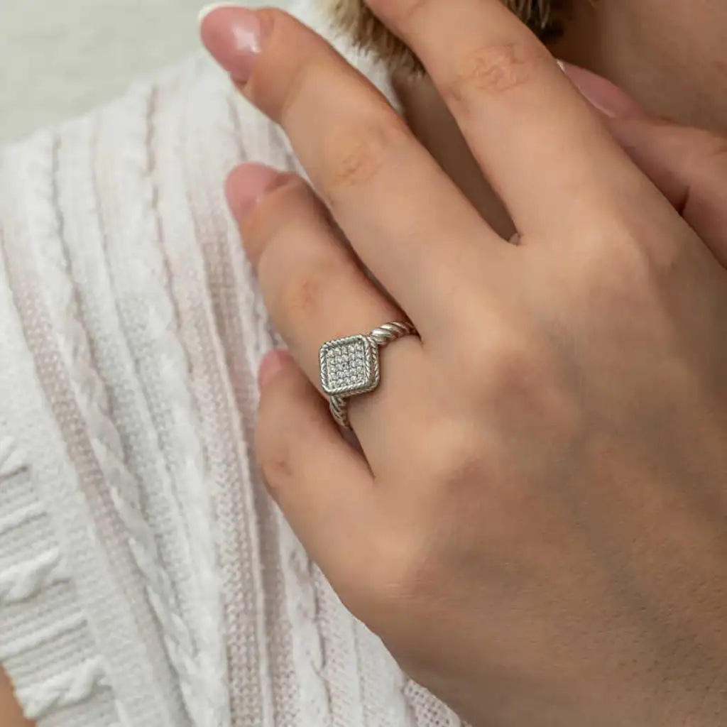 Gümüş Kare Zirkon Taşlı Kadın Yüzük