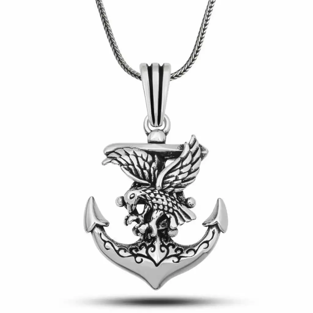 Gümüş Kartal Figürlü Deniz Çapası Kolye