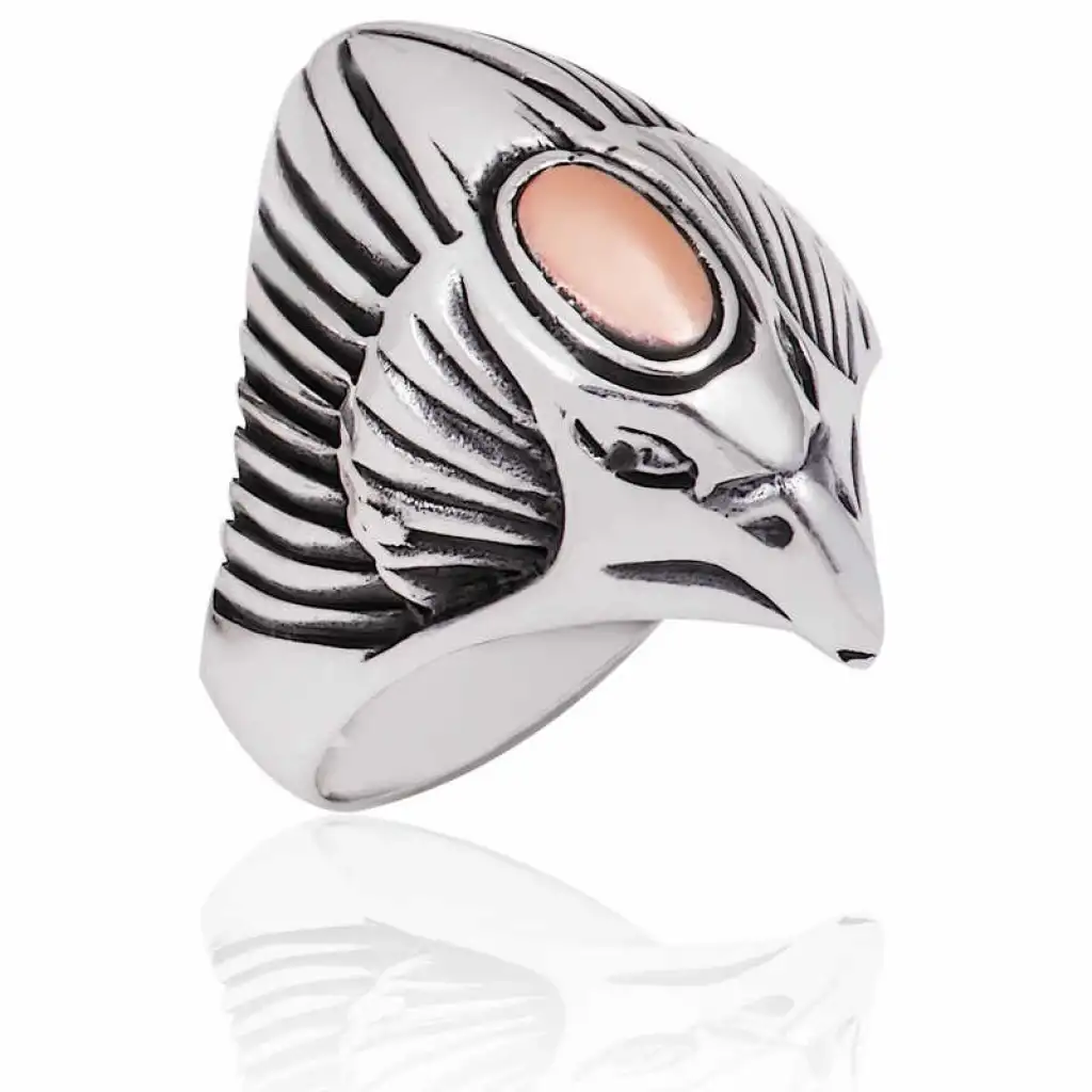 Kuşların kralı olan ve savaşmak üzere dünyaya inen kartal, özellikle savaşçı ve güçlü olmasıyla tanınır; bu yüzden pek çok ulusun sembolü olmuştur. Bu derin anlamdan esinlenerek oluşturulan kartal kafası erkek yüzük; kendinize yada sevdiklerinize doğum gününde, babalar gününde yada özel günlerde hediye edebilirsiniz. Bu şık erkek yüzük 925 ayar gümüşten imal edilmiştir. Gümüş üzerine oksit kaplama yapılmıştır. Oksit kaplama yapılan yüzükler parlaklığını uzun süre muhafaza eder. Tüm erkek yüzüklerde olduğu gibi gümüş kartal kafası erkek yüzük de el emeği ile üretilmiştir. Gümüş ve değerli taşlar nedeniyle belirtilen ortalama ürün ağırlığında ± %10 sapma olabilmektedir.