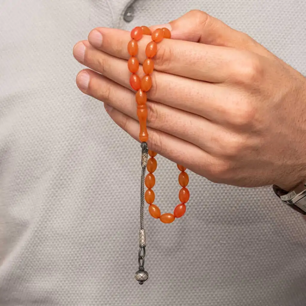 Gümüş Kazaz Püsküllü Sıkma Kehribar Tesbih