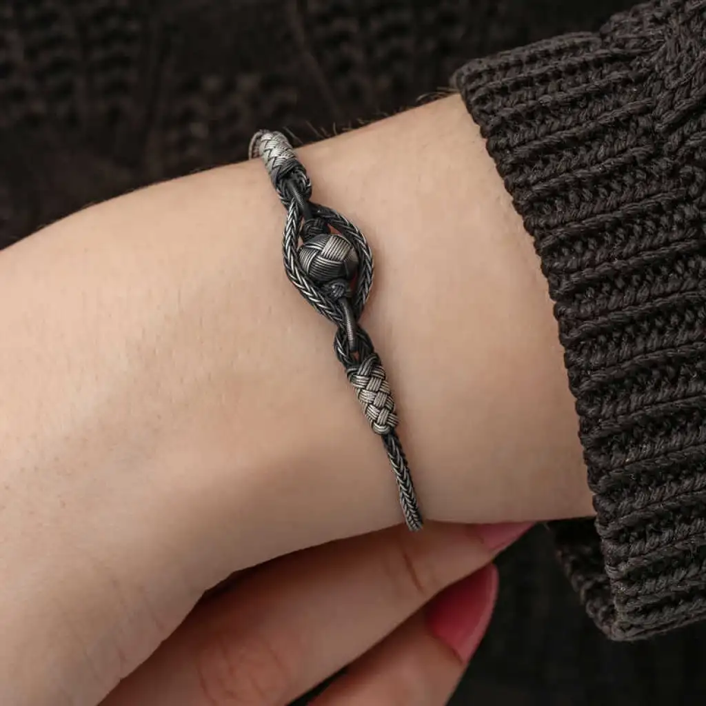 Gümüş Kazaziye Örgü Bileklik