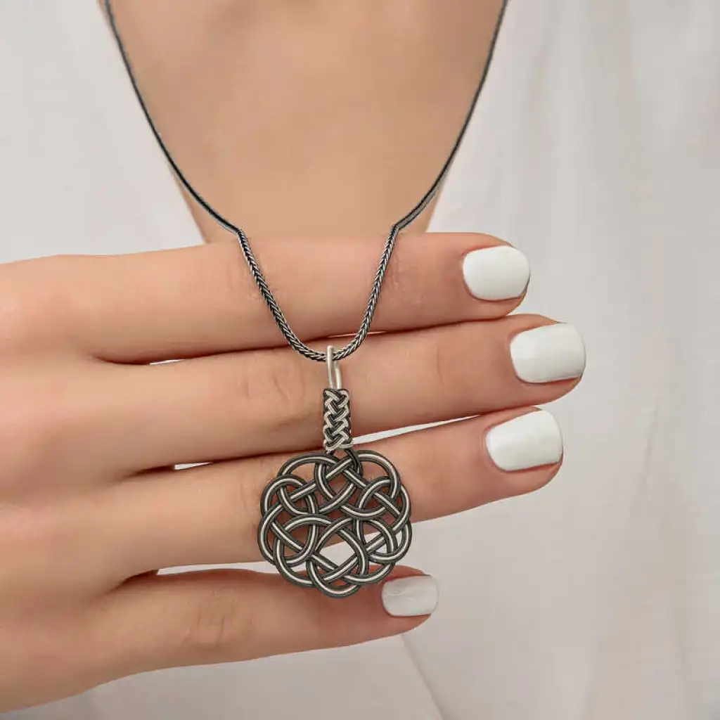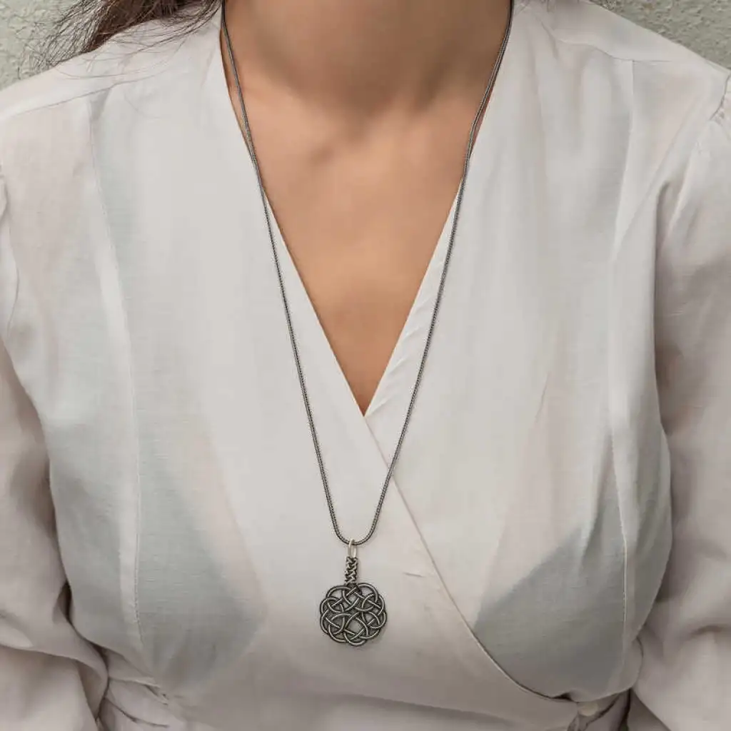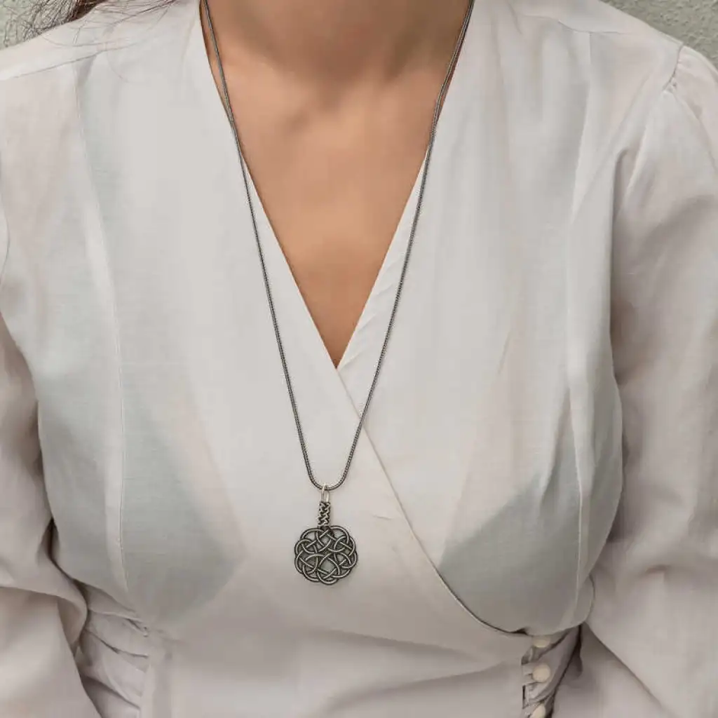 Gümüş Kazaziye Örgü Kadın Kolye