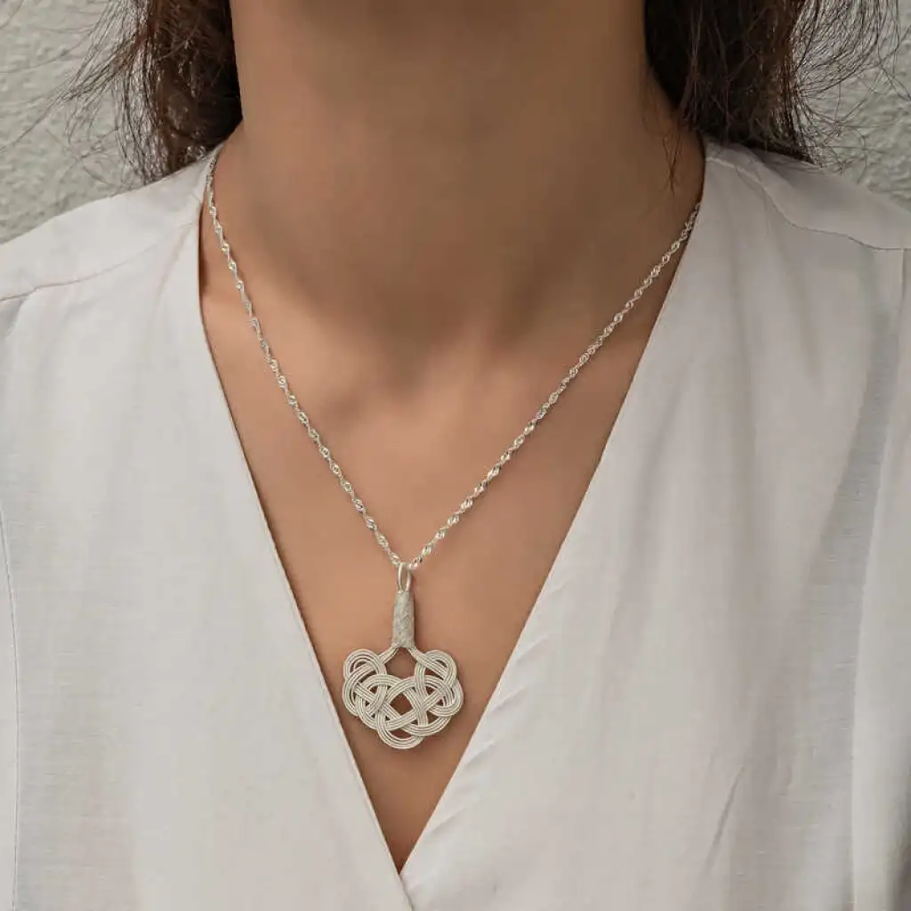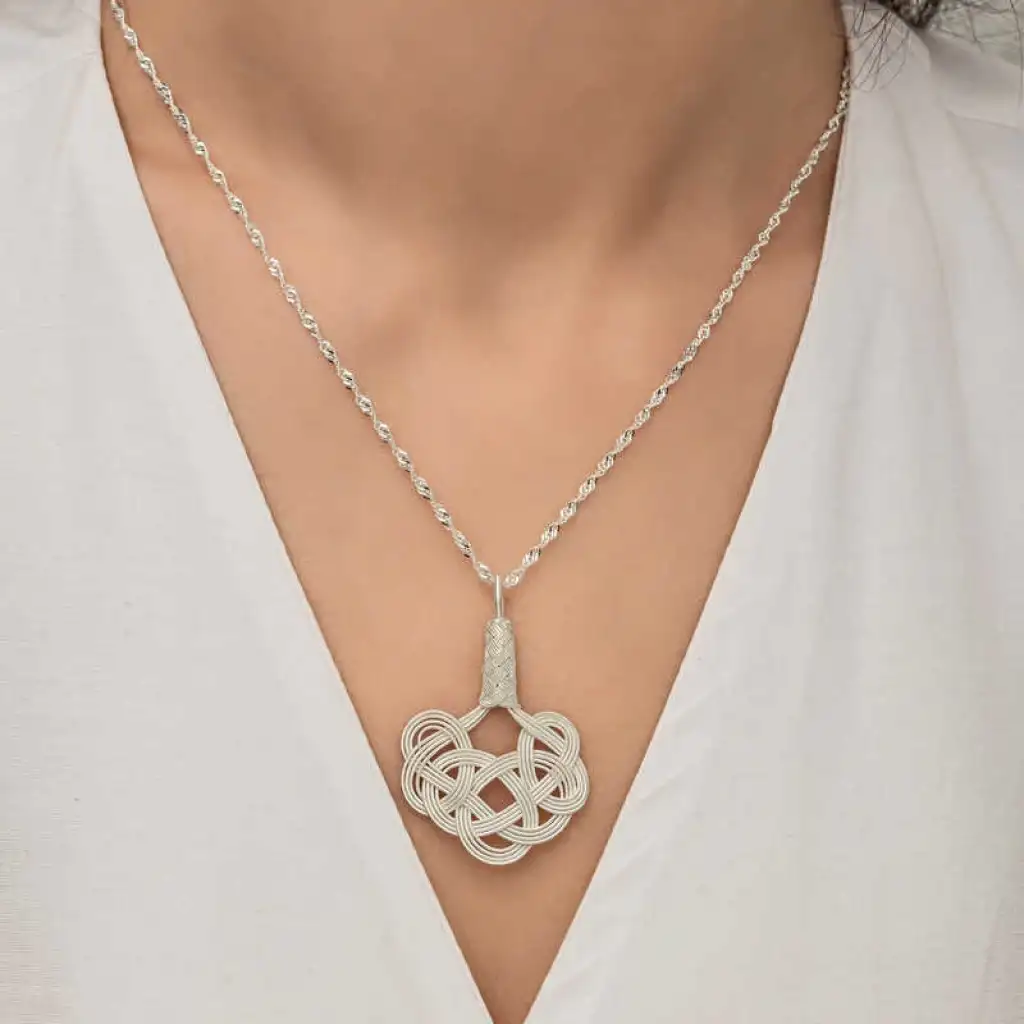 Gümüş Kazaziye Örgü Kadın Kolye