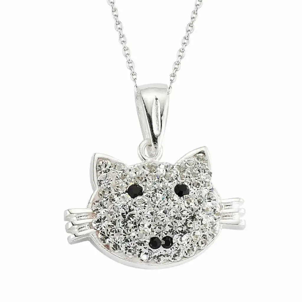 Evlerimizin sevimli neşe kaynağı kediler, temiz olmalarının yanı sıra masumiyetin simgesidir. Asil ve mantıklı bir kişiliğe, mükemmel sezgilere ve akılcı bir duyarlılığa sahiptirler. Özel günlerin en tercih edilen hediye seçeneklerinden olan gümüş takılar, sevdiklerini mutlu etmek ve onlara her an yanlarında taşıyabilecekleri bir hediye vermek isteyenler için tasarlandı. Masumiyetin simgesi olan kedi figürlü gümüş kolyeyi kız kardeşinize, sevgilinize ya da arkadaşlarınıza armağan edebilirsiniz. Kristal taşlı kedi bayan kolye 925 ayar gümüşten imal edilmiştir. Gümüş üzerine rodyum kaplama yapılmıştır. Rodyum kaplama yapılan gümüş bayan kolye modelleri parlaklığını uzun süre muhafaza eder ve oksitlenmesi gecikir. Kolye üzerinde bulunan tüm taşlar kristaldir. Gümüş olan zincir boyu ortalama 45 cm'dir. Gümüş bayan kedi kolye diğer tüm gümüş bayan kolye modellerinde olduğu gibi el emeği ile üretilmiştir. Gümüş ve değerli taşlar nedeniyle belirtilen ortalama ürün ağırlığında ± %10 sapma olabilmektedir.