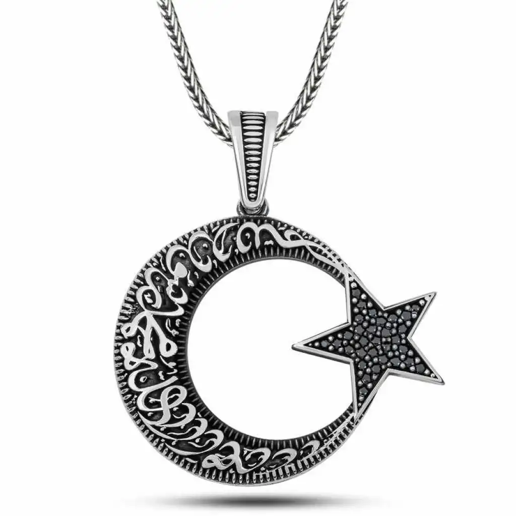 Kelime-i Tevhid yazılı erkek kolye, İslam dininin en önemli ifadesi olan "Lâ ilâhe illallah, Muhammedur Resûlullah" ifadesinin kısaltması olan "Kelime-i Tevhid"i taşır. Bu ifade, Allah’tan başka ilah olmadığına ve Hz. Muhammed’in O’nun elçisi olduğuna inanmayı simgeler.Bu tür bir kolye, takan kişiye manevi bir değere sahip gibi gelir ve kişinin inancını ifade etmesine olanak tanır. Ayrıca, bu kolyeyi taşıyanlar, inançlarını ve değerlerini dışa vurma fırsatı bulurlar. Hem estetik bir aksesuar olarak hem de dini bir sembol olarak kullanılması, bu tür kolyelerin popülerliğini artırır.Gümüş üzerine oksit kaplama yapılmıştır. Tüm gümüş kolyelerde olduğu gibi gümüş Kelime-i tevhid kolye modeli de el emeği ile üretilmiştir. Gümüş ve değerli taşlar nedeniyle belirtilen ortalama ürün ağırlığında ± %10 sapma olabilmektedir.