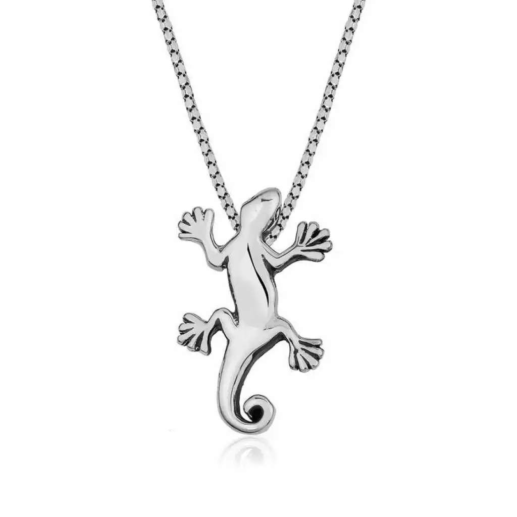 Kertenkeleler kimileri için sevimli kimileri içinse ürkütücü hayvanlardır. Kertenkelelerin beklenmeyen bir durum karşısında kuyruğunu bırakıp gitmeleri ve kuyruğunun bir ay içinde yeniden oluşması bu hayvana mistik bir hava katmaktadır. Kertenkele aksesuarlarını tercih eden kişiler yaşamı olduğu gibi yaşayan ve her şeyi olacağına bırakan bir kişiliğe sahip oldukları izlenimini sergilerler. Beklenmedik bir durumda bir parçasını bırakıp giden kertenkele, kendini koruma yöntemini de en iyi şekilde geliştirmiştir canlılardan biridir. Herhangi bir olumsuz durumda korunduğuna inanan kişiler, bu kolyeyi tercih edebilirler. Kolye 925 ayar gümüşten imal edilmiştir. Bu kolye üzerinde oksit kaplama yapılmıştır. Oksit kapalama yapılan gümüşler eskitme görünüme sahiptir. Tüm gümüş kolye modellerinde olduğu gibi gümüş kertenkele kolye modeli de el emeği ile üretilmiştir. Gümüş ve değerli taşlar nedeniyle belirtilen ortalama ürün ağırlığında ± %10 sapma olabilmektedir.