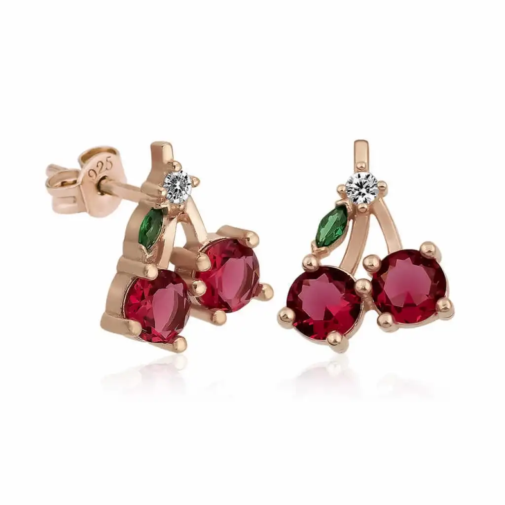 Yaz sezonunun en çok tercih edilen aksesuarları, renkli meyve konseptiyle favorileriniz arasında yer alacak. Meyve konsepti aksesuarlar yazın çok konuşulan küpeleri olacak ve günlük stilinize renk katacak. Bu şık kiraz figür küpe; doğum günü hediyesi, sevgililer günü hediyesi veya özel günlerde tercih edilebilecek mükemmel bir seçenektir. Gümüş zirkon taşlı kiraz figür meyve çivili küpe 925 ayar gümüşten imal edilmiştir. Bu küpe üzerine rose kaplama yapılmıştır. Rose kaplama yapılan ürünler parlaklığını uzun süre muhafaza eder, oksitlenmesini geciktirir. Tüm gümüş bayan küpe modellerinde olduğu gibi gümüş kiraz figürlü meyve küpe modeli de el emeği ile üretilmiştir. Gümüş ve değerli taşlar nedeniyle belirtilen ortalama ürün ağırlığında ± %10 sapma olabilmektedir.
