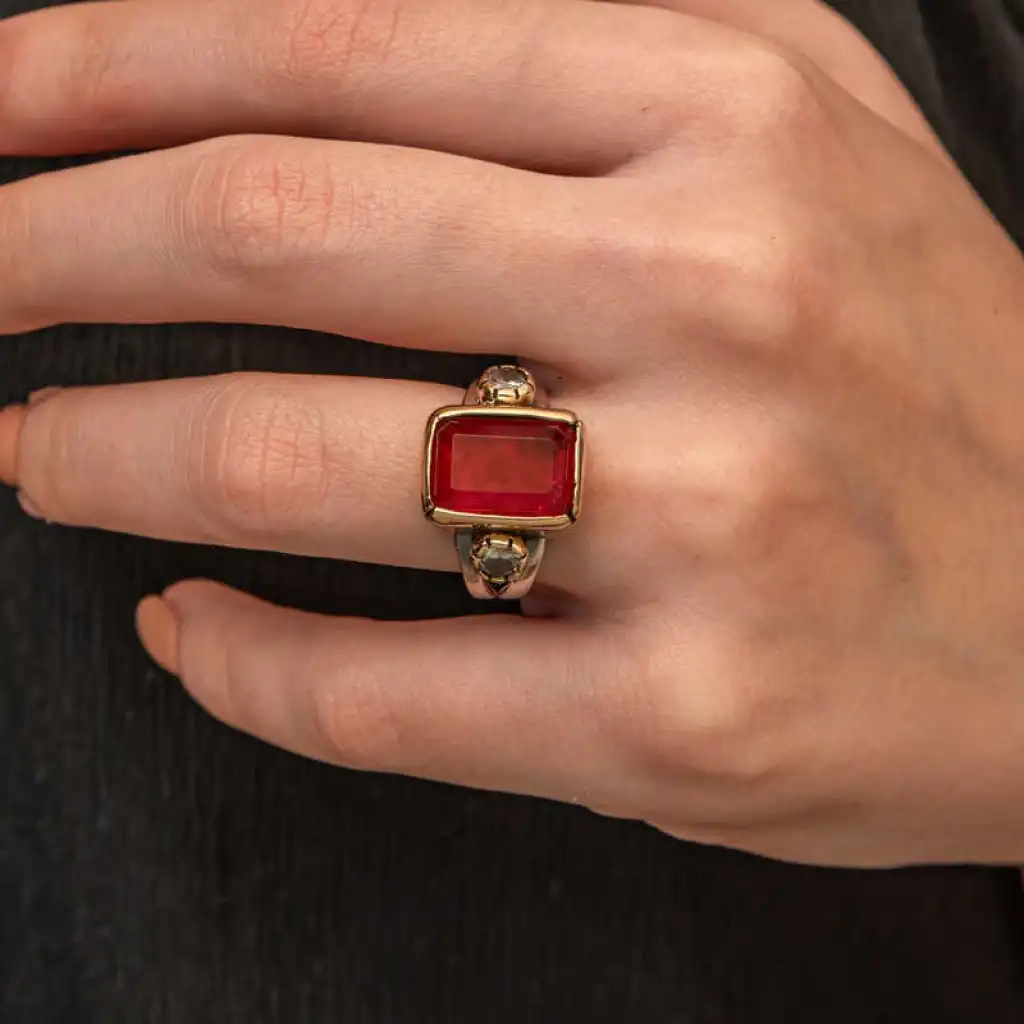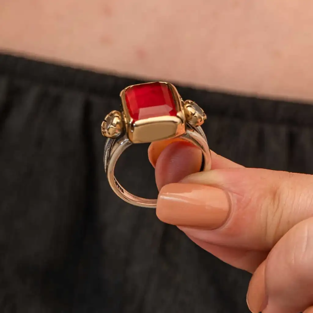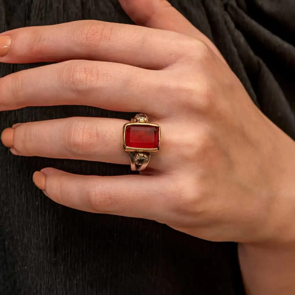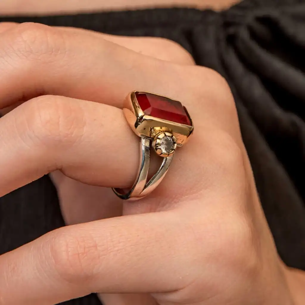 Gümüş Kırmızı Zirkon Taşlı Otantik Kadın Yüzük