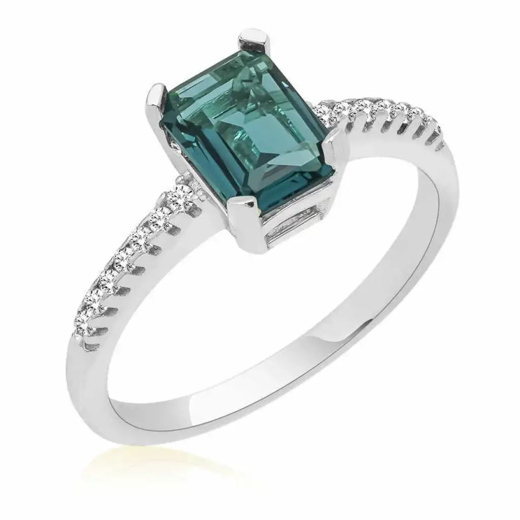 Gümüş Koyu Yeşil Baget Taşlı Kadın Yüzük