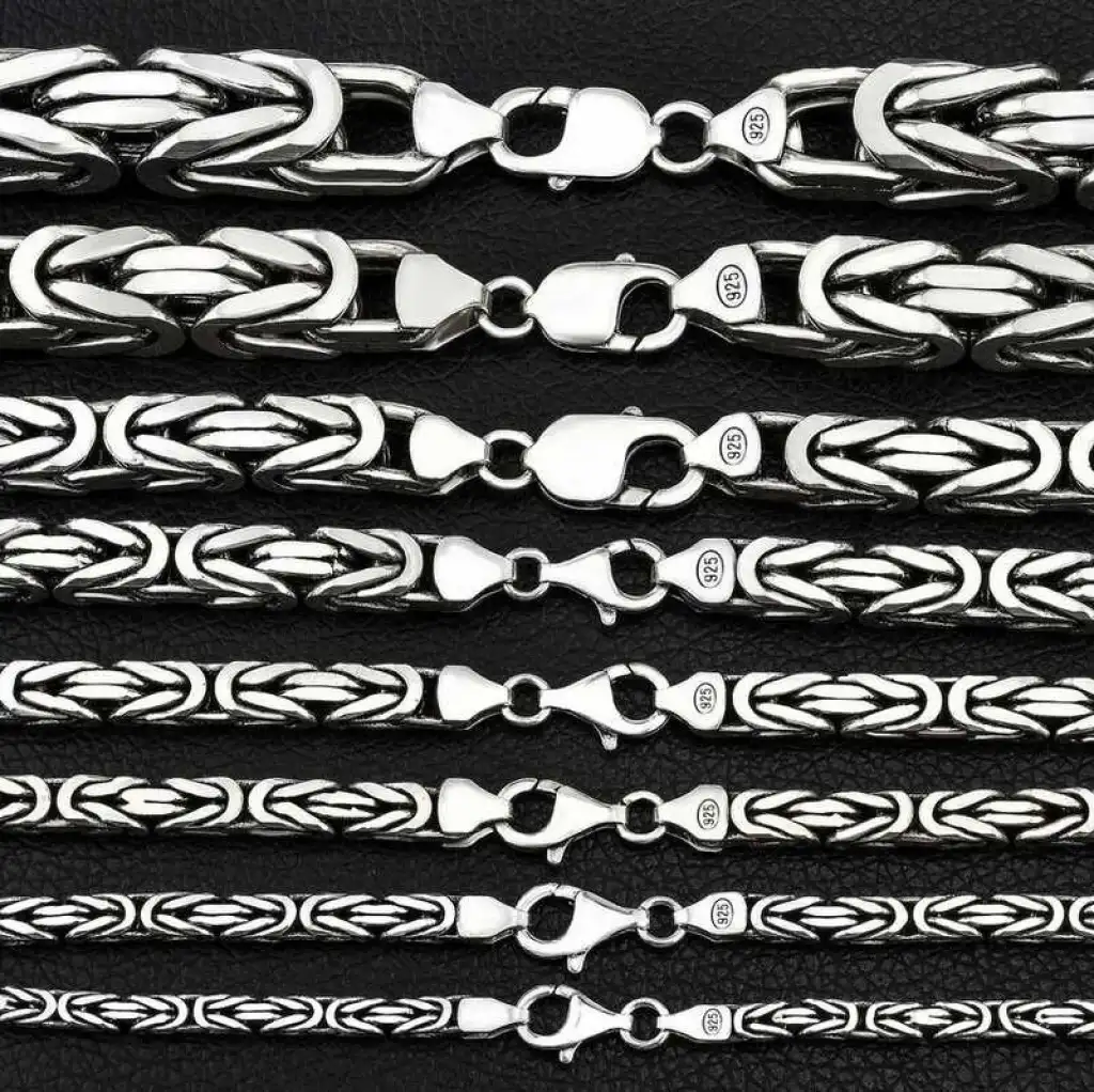 Gümüş zincir modelleri, gümüş takılar içerisinde hiç kuşkusuz en çok tercih edilen ürün gruplarından birisidir. Gümüş zincir modelleri içerisinde de kral zincirler yıllarca çok sevilenler arasında hep üst sıralardaki yerini korumuştur. Kral zincir modelleri gerek fiyatları gerek kalitesi bakımından erkek takı sevenlerin hem boyunlarını, hem de bileklerini süslemiştir. Gümüş kral zincir modellerini genellikle erkekler tercih eder. Bu nedenle babalar günü hediyesi veya sevgililer günü hediyesi almak isteyen hanımların gözde tercihidir. İster kolye uçları ile birlikte, isterseniz de sade zincir şeklinde kullanabilirsiniz. Bu kral zincir modeli 925 ayar gümüşten imal edilmiştir. Tamamen el emeği ile kolye haline getirilmektedir. Gümüş zincir üzerine parlaklığı uzun süre koruması için ayrıca gümüş kaplama da yapılmıştır. İsteğe göre özel siparişle farklı boy ve gramlarda da imal edilebilir. Tüm gümüş zincir modellerinde olduğu gibi 925 ayar gümüş köşeli kral zincir modeli de tamamen el emeği ile üretildiği için belirtilen ortalama ürün ağırlığında ± %10 fark olabilir.