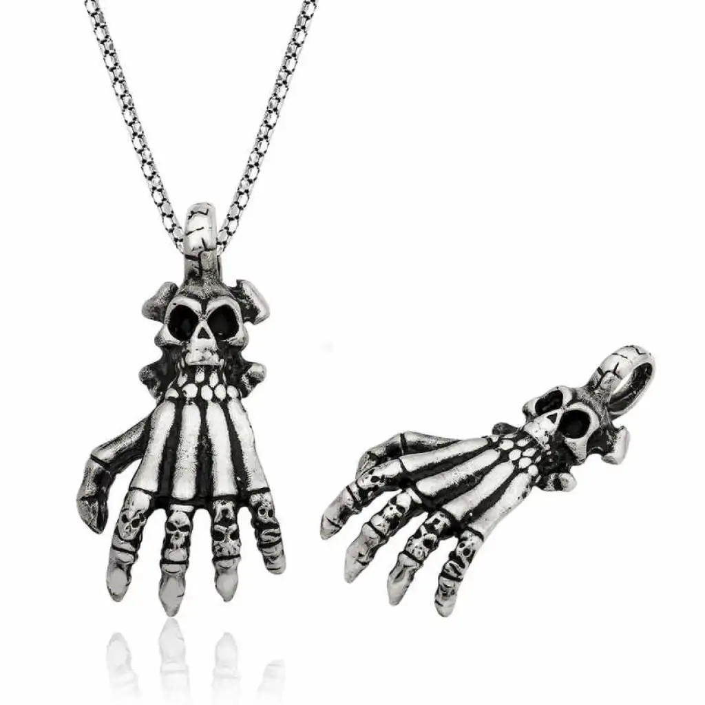 Gümüş Kuru Kafa El Erkek Kolye