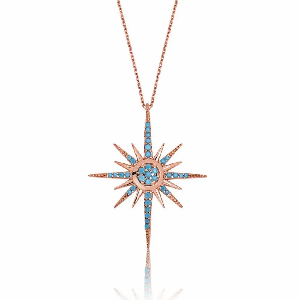 Kutup yıldızı milyonlarca yıldızdan sadece biridir ama aydan en çok etkilenen yıldızdır. Tek isteği aya kendisini beğendirmektir. Ağladıkça parıldar onun da yüreği ve ayın ne kadar soğuk olduğunu düşünür. Onun yerine üşür. Dünya üzerinde görüldüğü her anı aslında onun gerçeğe dönüşen düşüdür. Gökyüzü ne kadar büyükse kutup yıldızı o kadar küçüktür. Kutup yıldızı ulaşamaz aya ne kadar hızlı ilerlese de, ne de ay güneşe. Güneş sıcağından vazgeçip dönmez yüzünü ona. Siz de kıyamete kadar bitmeyecek aşkınızı bu anlamlı kutup yıldızı kolye ile taçlandırın. Bu şık kolye modeli 925 ayar gümüşten imal edilmiştir. Gümüş üzerine rose altın kaplama yapılmıştır. Rose altın kaplama yapılan gümüş kolyeler parlaklığını uzun süre muhafaza eder, gümüş rengini pembe renge dönüştürür ve oksitlenmeyi geciktirir. Üzerinde bulunan taşlar zirkondur. Zincir boyu ortalama 45 cm'dir. Ürünlerimizin tamamı el emeği ile üretilmiştir. Gümüş ve değerli taşlar nedeniyle belirtilen ortalama ürün ağırlığında ± %10 sapma olabilmektedir.