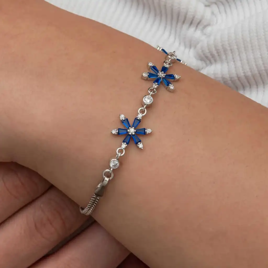 Gümüş Lacivert Lotus Çiçeği Kadın Bileklik