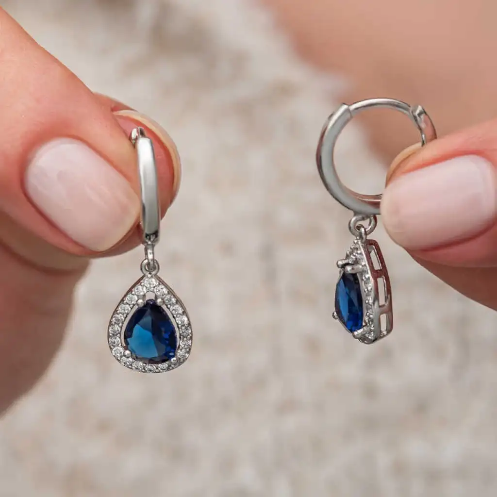Gümüş Lacivert Zirkon Taşlı Damla Küpe