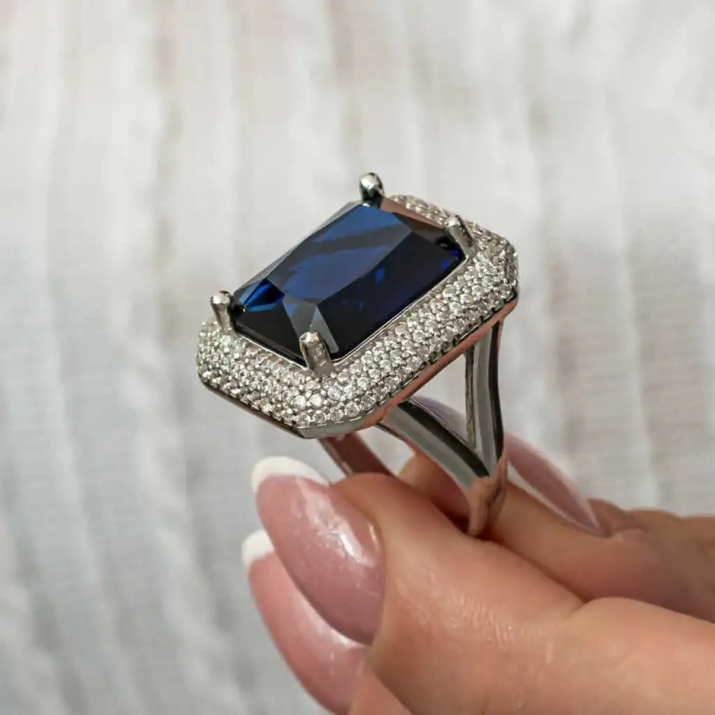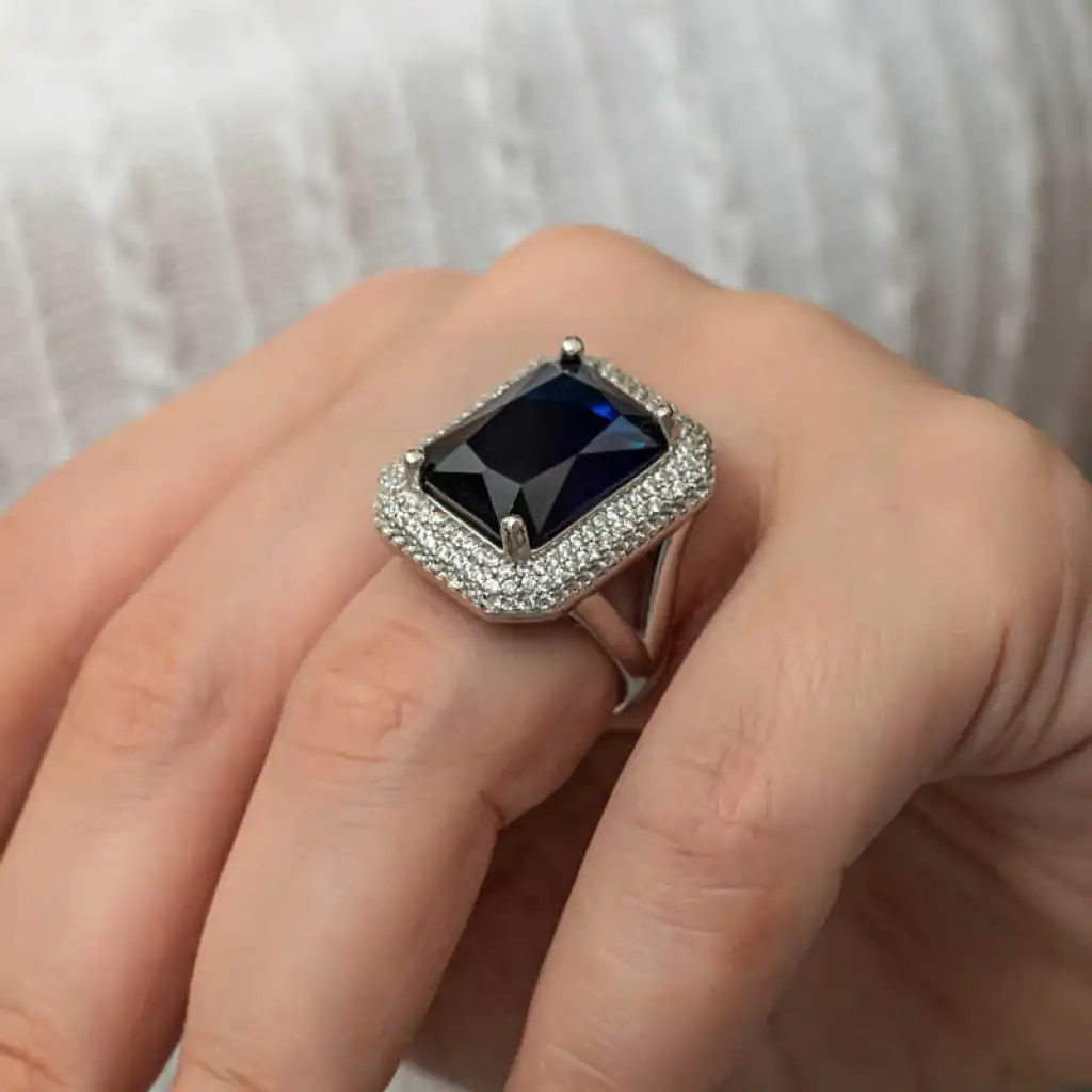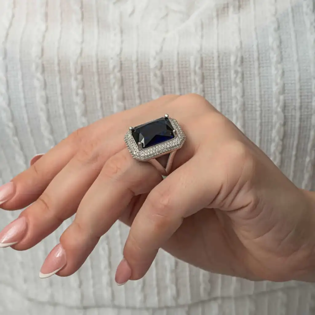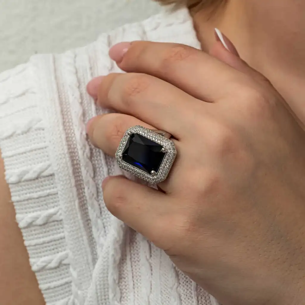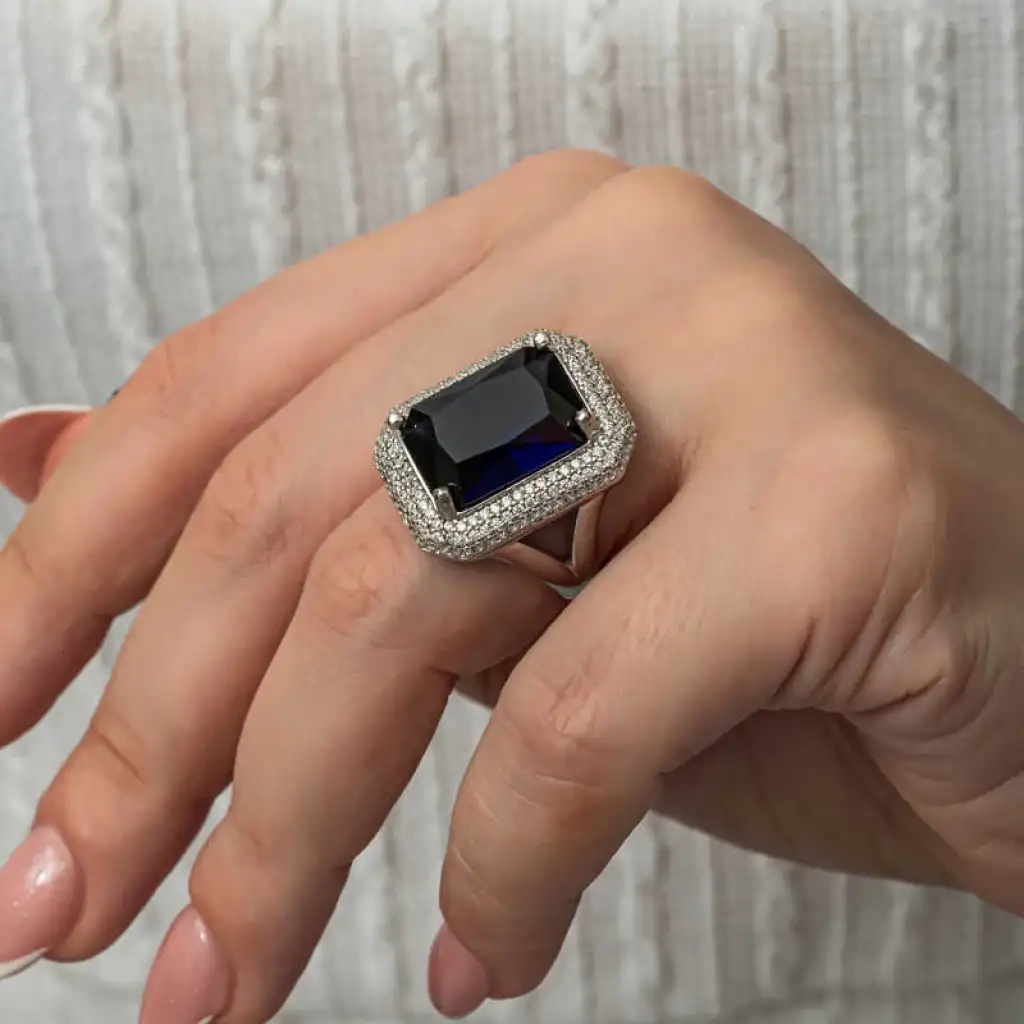 Gümüş Lacivert Zirkon Taşlı Kadın Yüzük