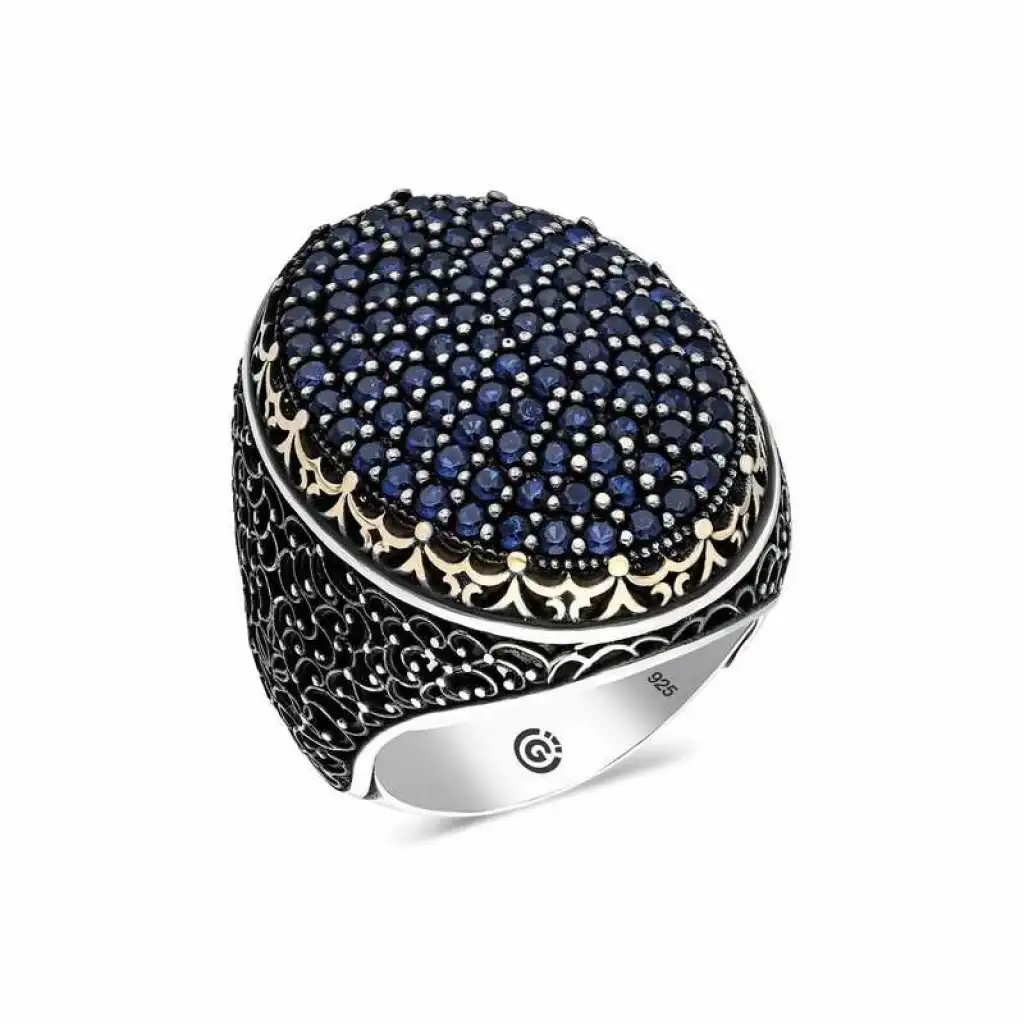 Gümüş Lacivert Zirkon Taşlı Oval Erkek Yüzük