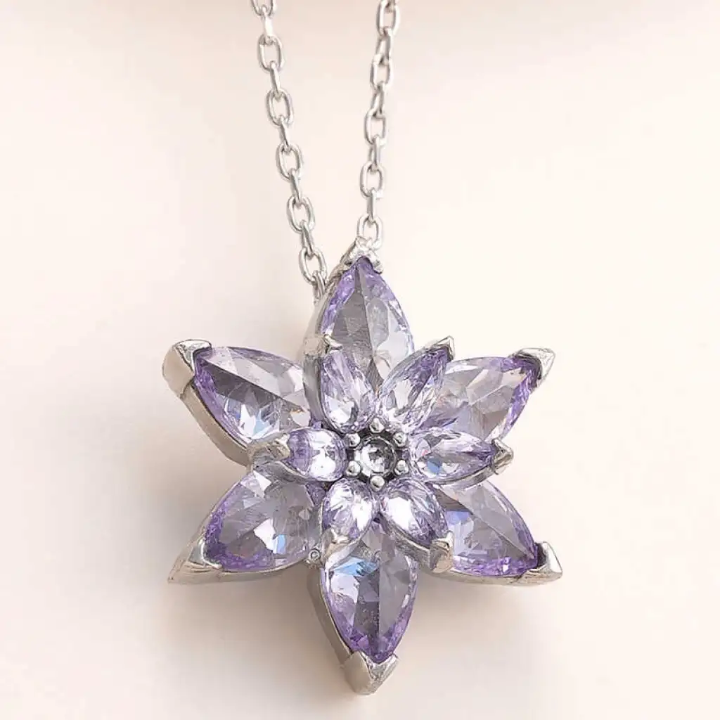 Gümüş Lila Lotus Çiçeği Kadın Kolye