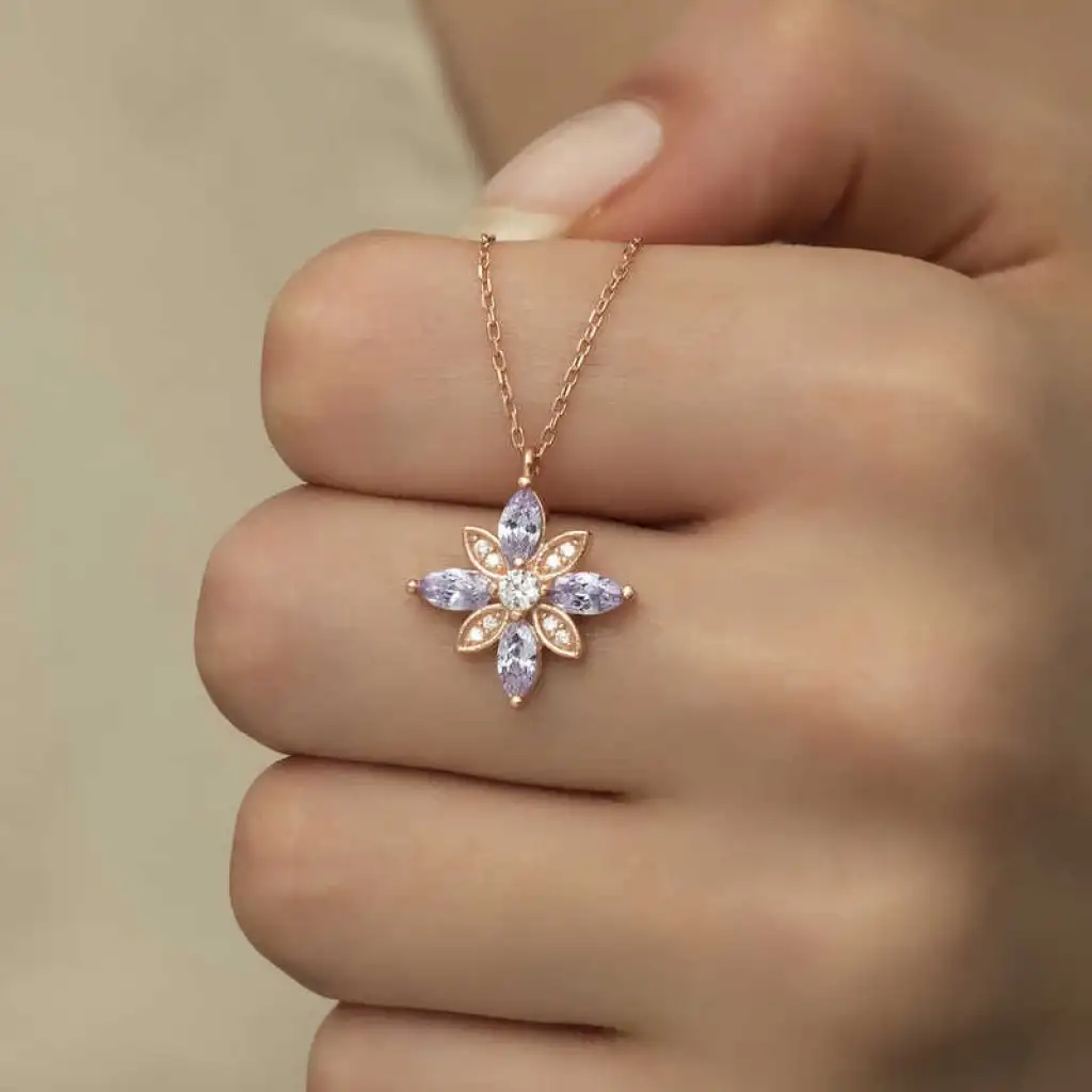 Gümüş Lila Taşlı Umut Çiçeği Kolye