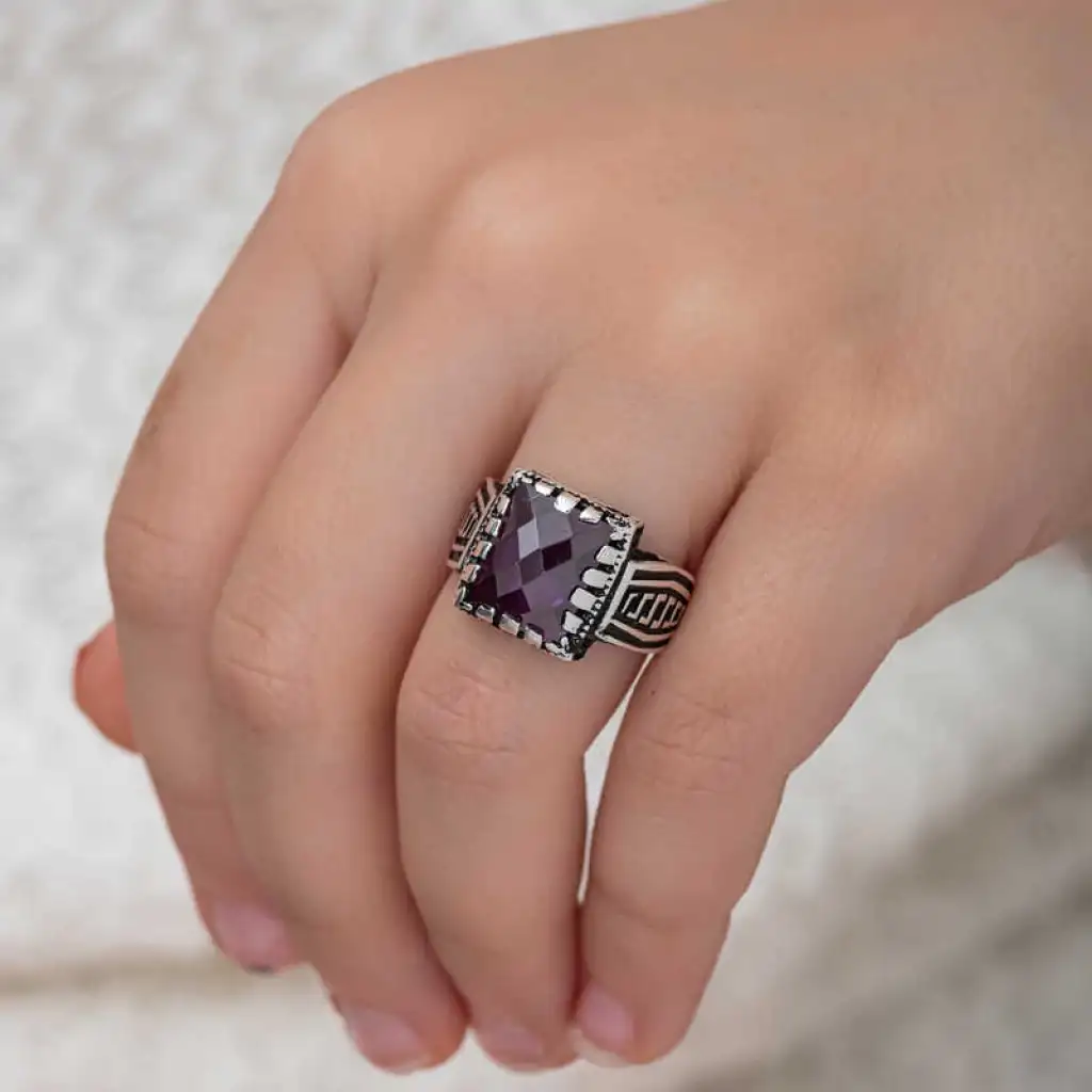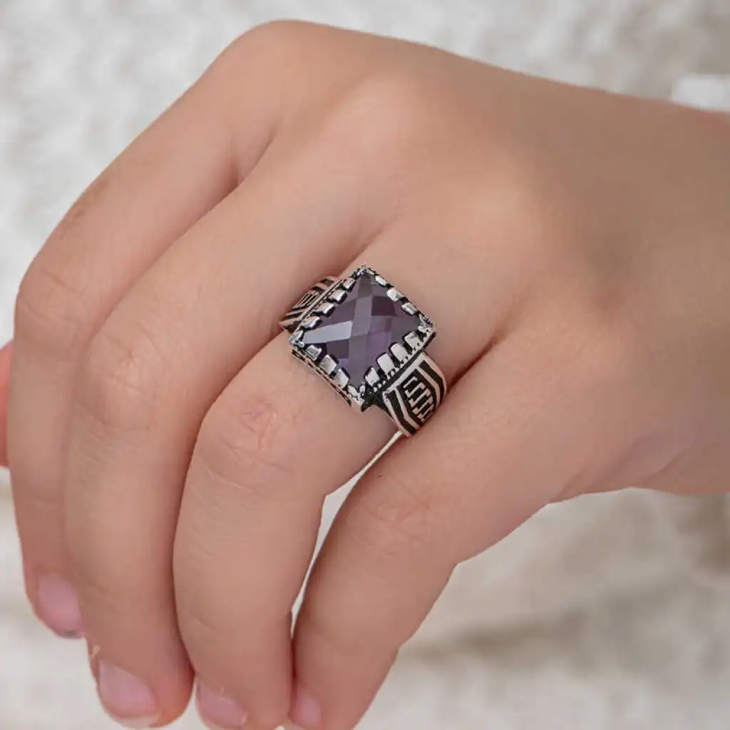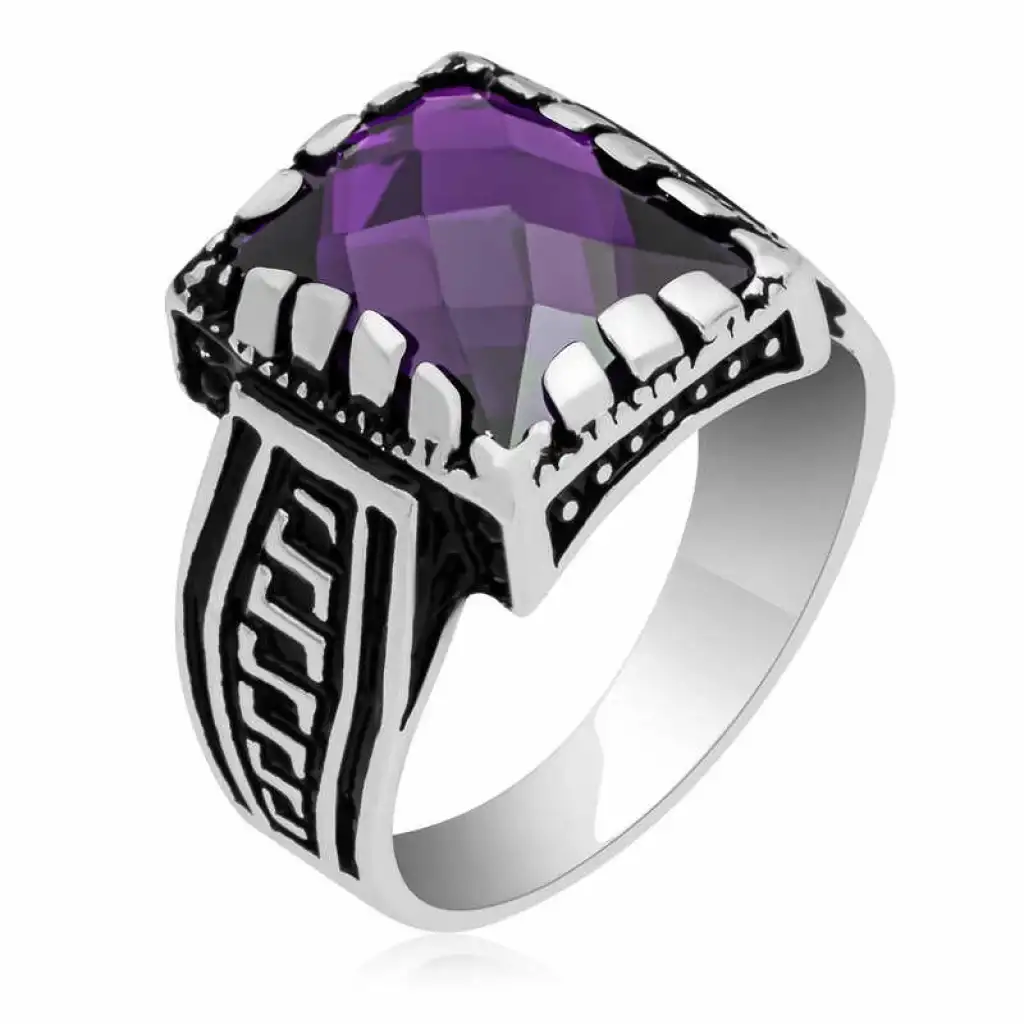 Gümüş Lila Zirkon Taşlı Çocuk Erkek Yüzük