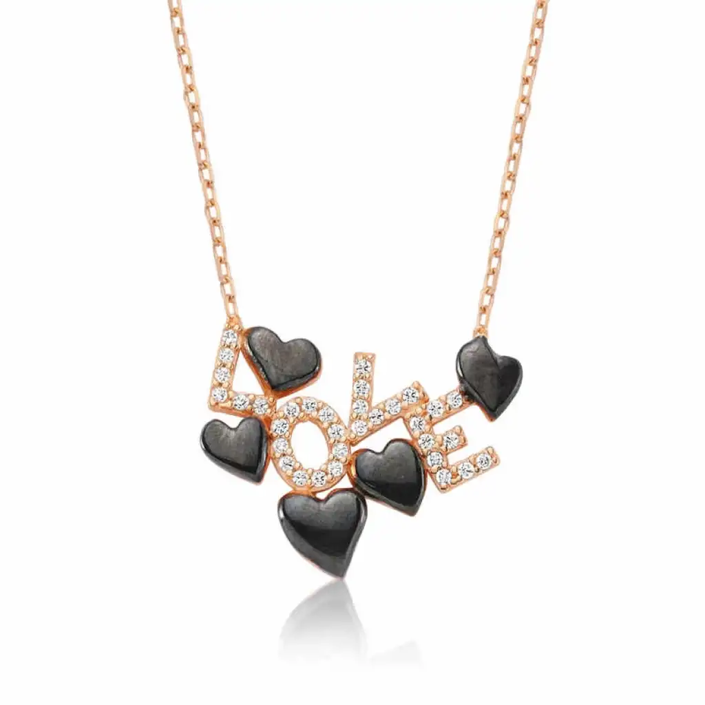 Aşkın ve sevginin simgesi kalpli love yazılı bayan kolye ile sevdiğiniz kişiye alabileceğiniz en anlamlı hediyelerden biri olacaktır. Bu şık tasarımıyla ve taşıdığı anlam itibari ile sevdiklerinizi özel hissettirin. Kalpli love yazılı bayan kolye 925 ayar gümüşten imal edilmiştir. Gümüş üzerine rose altın kaplama yapılmıştır. Rose altın kaplama yapılan gümüş bayan kolye modelleri parlaklığını uzun süre muhafaza eder ve oksitlenmesi gecikir. Gümüş love yazılı kalpli bayan kolye üzerinde bulunan beyaz taşlar zirkondur. Gümüş olan zincir boyu ortalama 45 cm'dir. Gümüş love yazılı kalpli bayan kolye diğer tüm gümüş bayan kolye modellerinde olduğu gibi el emeği ile üretilmiştir. Gümüş ve değerli taşlar nedeniyle belirtilen ürün ağırlığında ± %10 sapma olabilmektedir.