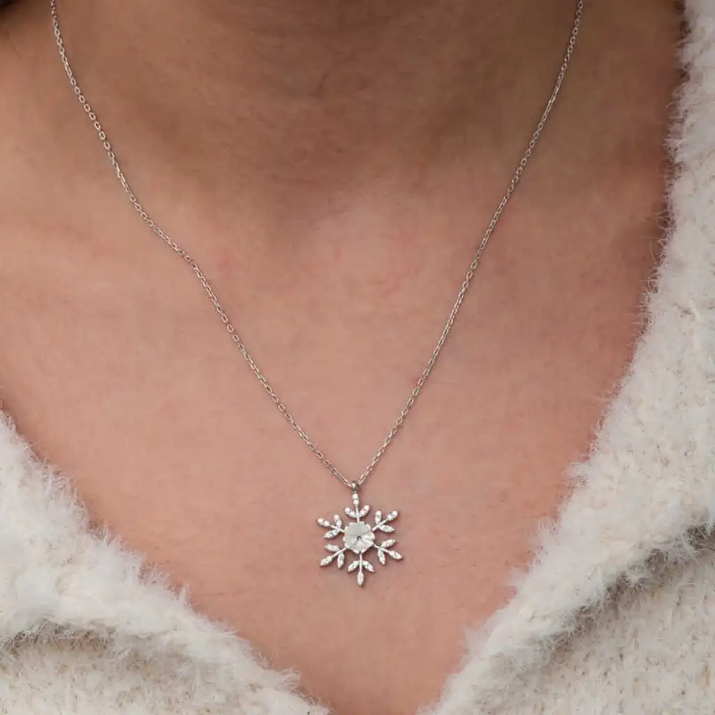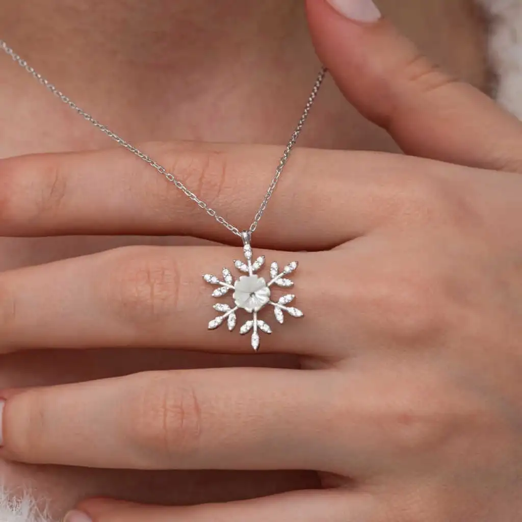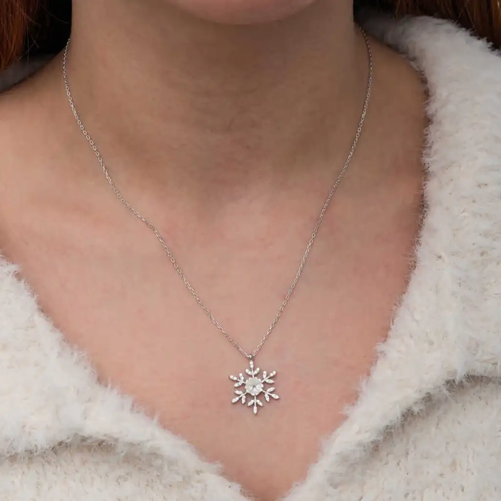 Gümüş Manolya Çiçeği Kar Tanesi Kadın Kolye