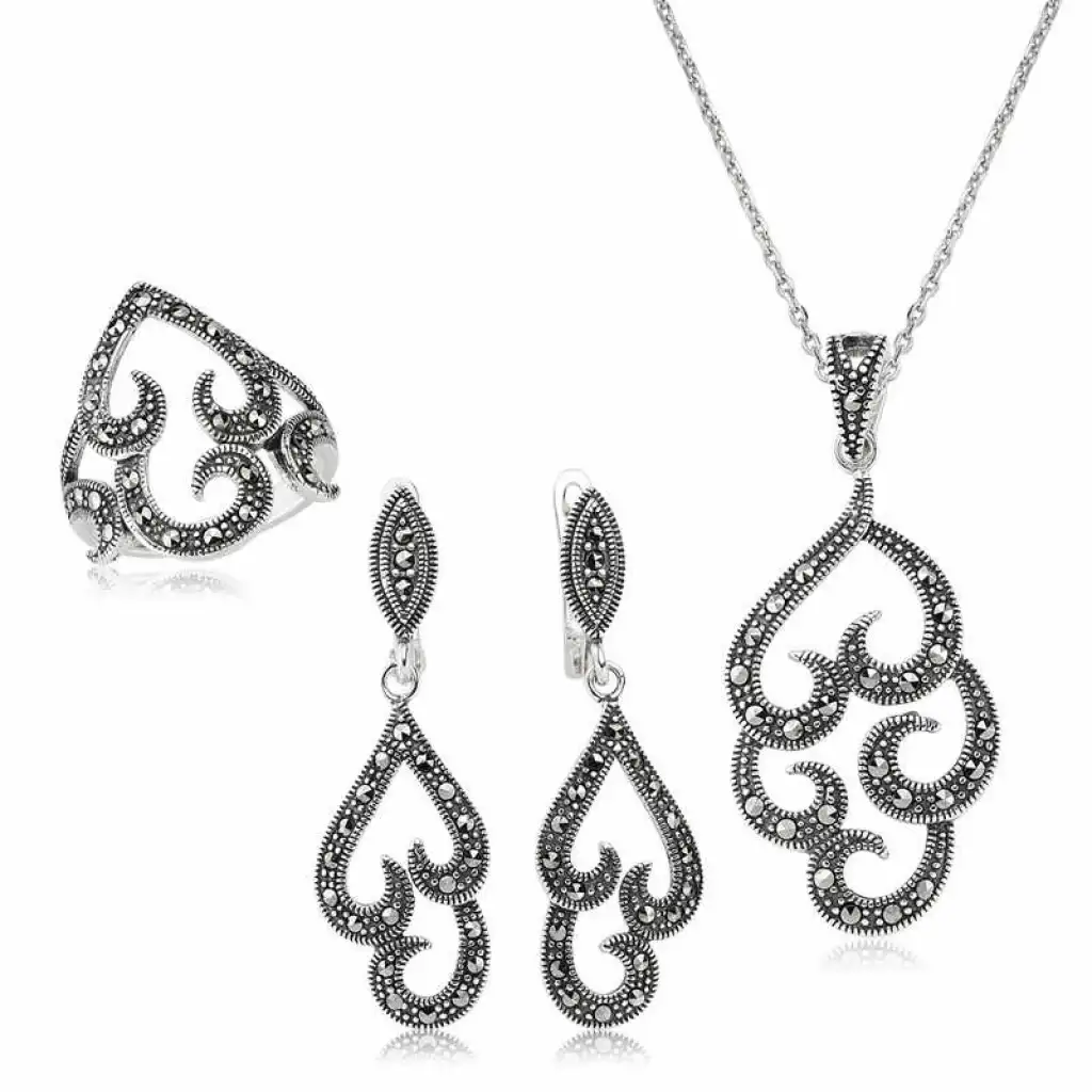 Gümüş Markazit Taşlı Bayan Set