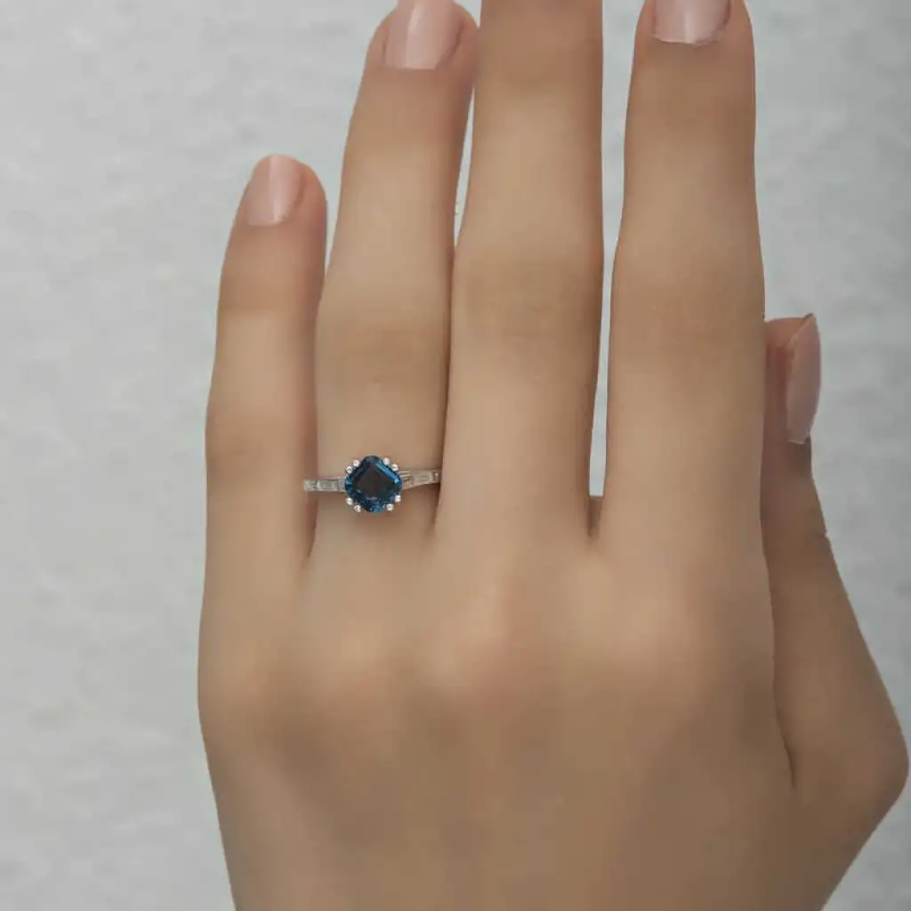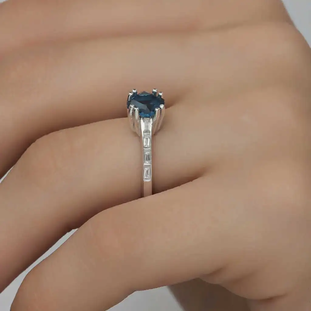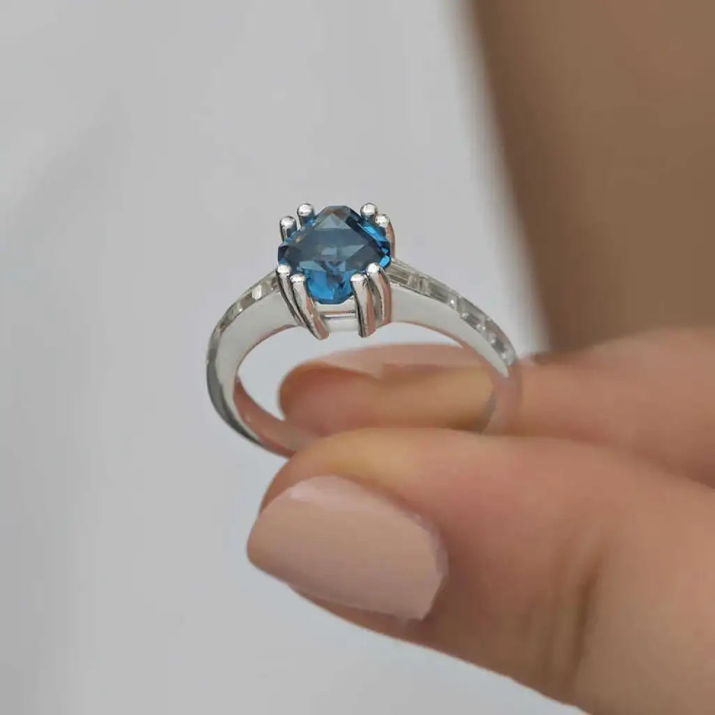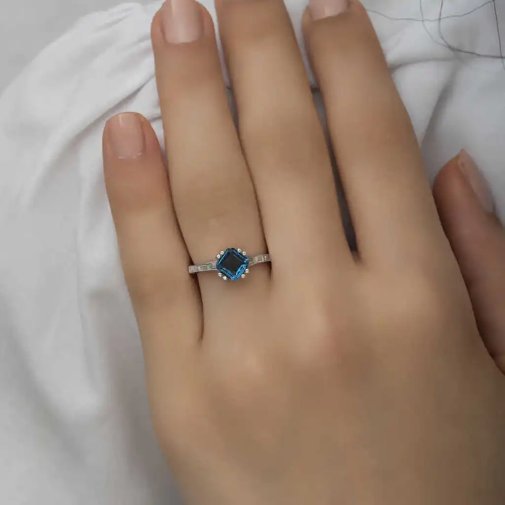 Gümüş Mavi Baget Tek Taş Kadın Yüzük