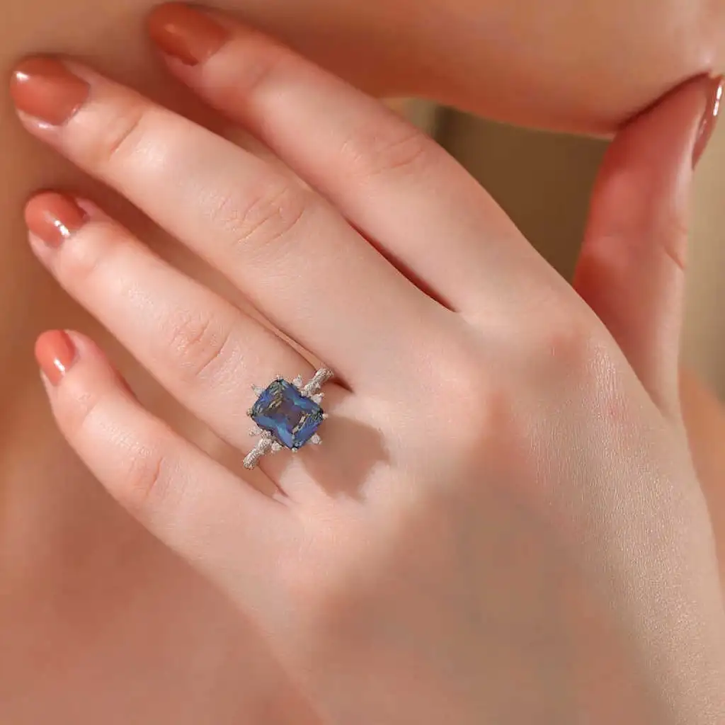 Gümüş Mavi Zirkon Taşlı Kadın Yüzük