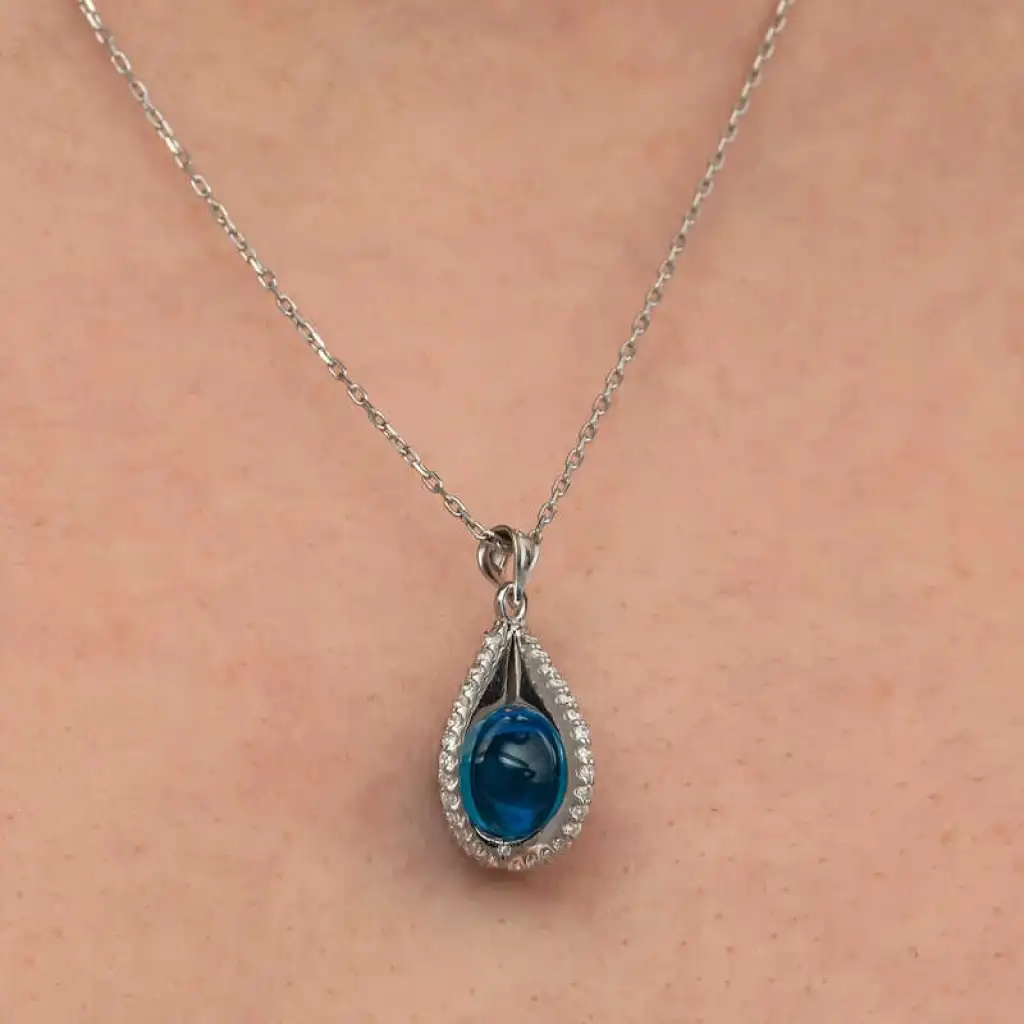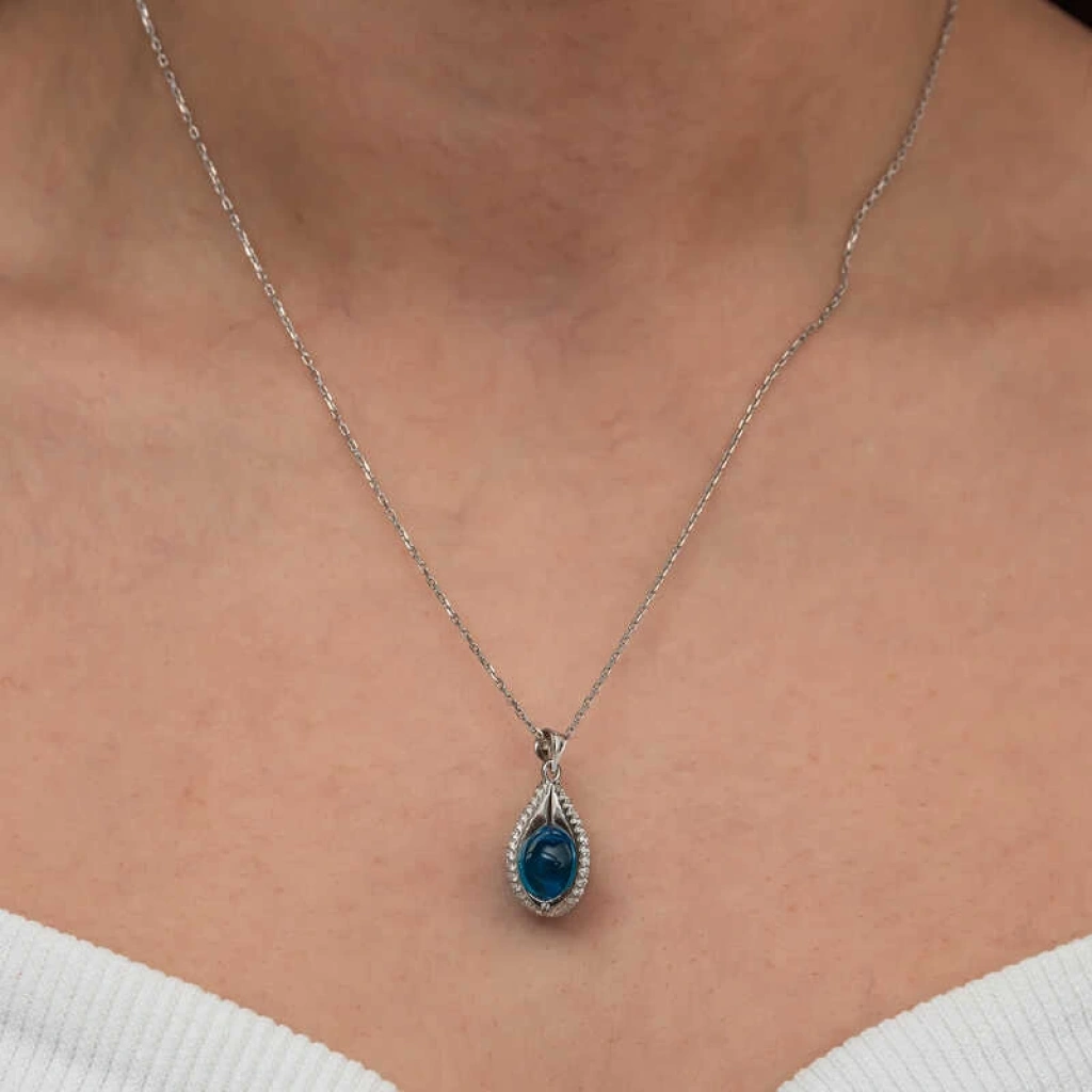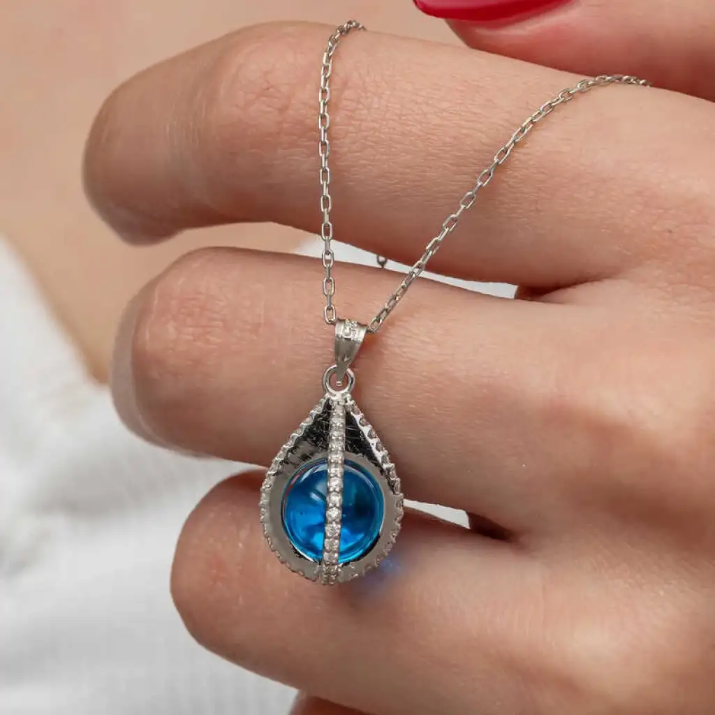 Gümüş Mavi Zirkon Taşlı Küre Kadın Kolye