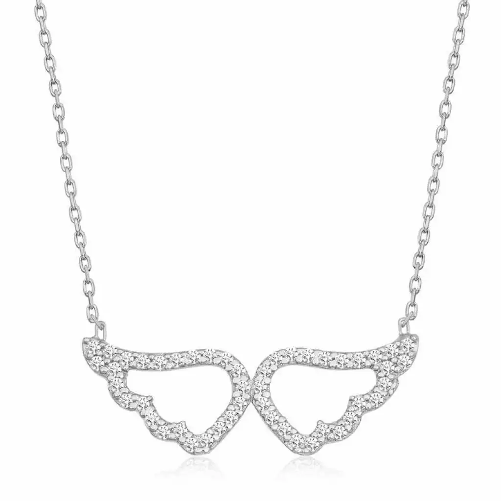 Melek kanadı saflığın, temizliğin simgeleri ve koruyucu anlamı nedeni ile de son derece hoş bir hediye seçeneği olarak öne çıkmaktadır. Bu nedenle gümüş melek kanadı kadın kolyesi hediye edilen kişiye melek kadar saf ve temiz olduğunu sonsuza kadar sevileceğini ifade etmektedir. Sizin olduğu kadar sevdiklerinizin de keyifle takacağı gümüş melek kanadı kadın kolye 925 ayar gümüşten üretilmiştir. Gümüş üzerinde rodyum kaplama vardır. Rodyum kaplama yapılan tüm gümüş kadın kolye modelleri parlaklığını uzun süre muhafaza eder. Tüm kadın kolye modellerinde olduğu gibi gümüş melek kanadı kadın kolye de el emeği ile üretilmiştir. Gümüş ve değerli taşlar nedeniyle belirtilen ürün ağırlığında ± %10 sapma olabilmektedir.