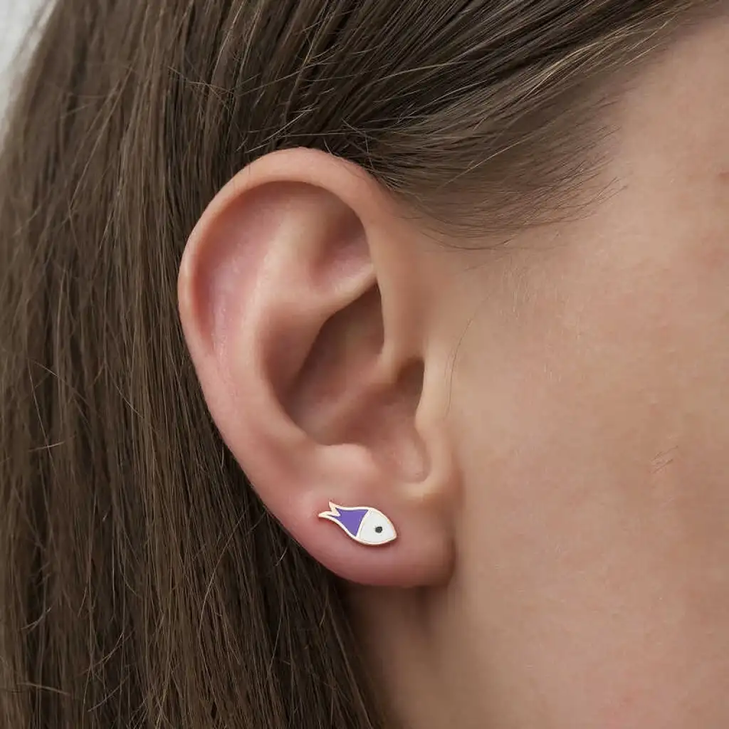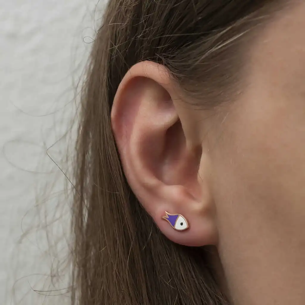 Her yaştan kadının stiline uyum sağlayabilecek farklı küpe modellerinin yer aldığı koleksiyonumuzda birbirinden özgün tasarımlı küpe modelleri sizleri bekliyor. Mor balık figürü kullanılarak hazırlanan küpe aklınızı başınızdan alacak. Günlük kullanıma uygun bir model olan küpe her an sizlerle birlikte. Göz kamaştıran yapısıyla tasarlanmış gümüş mor balık küpeyi severek kullanacaksınız. Bu koleksiyonda hem kendiniz, hem de sevdikleriniz için mutlaka uygun bir küpe bulacaksınız. Gümüş mor balık küpe, 925 ayar gümüşten imal edilmiştir. Gümüş üzerine rose kaplama yapılmıştır. Rose kaplama yapılan gümüş bayan küpeler parlaklığını uzun süre muhafaza eder, oksitlenmesi gecikir. Üzerinde mor ve beyaz mine bulunmaktadır. Tüm gümüş bayan küpelerde olduğu gibi bu gümüş mor balık küpe modeli de el emeği ile üretilmiştir. Gümüş ve değerli taşlar nedeniyle belirtilen ortalama ürün ağırlığında ± %10 sapma olabilmektedir.