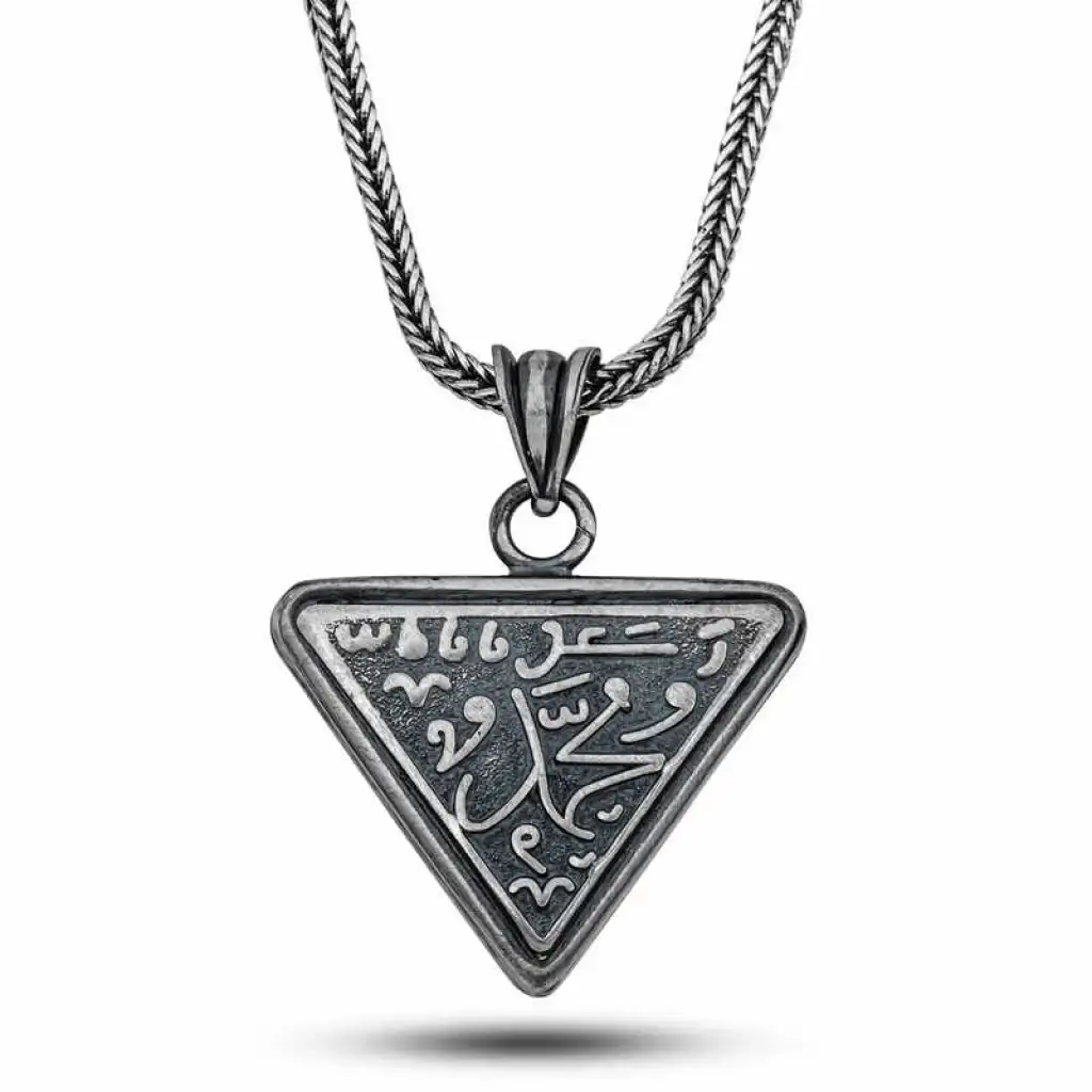 Kolye üzerindeki "Muhammed" ismi,İslam peygamberi Hz.Muhammed'i temsil eder.Cevşen,içinde çeşitli dualar ve isimler barındıran dini metindir.Bu dualar ve isimler,kişiye koruma,güç ve manevi destek sağlar.Böylece,kolyeyi takan kişi,kötü enerjilerden ve olumsuzluklardan korunmayı amaçlar.Bu kolye,dini duyguları güçlendirmek,Allah’a yakınlaşmak ve manevi huzur bulmak amacıyla kullanılır.Ayrıca,kişiye manevi güç ve sabır kazandırmayı hedefler.Muhammed yazılı cevşen dualı kolye modeli 925 ayar gümüşten imal edilmiştir.Gümüş üzerine oksit kaplama yapılmıştır.Oksit kaplama yapılan gümüş kolyeler parlaklığını uzun süre muhafaza eder,oksitlenmesi gecikir.Zincir boyu ortalama 55 cm'dir.Ürünlerimizin tamamı el emeği ile üretilmiştir. Gümüş ve değerli taşlar nedeniyle belirtilen ortalama ürün ağırlığında ± %10 sapma olabilmektedir.