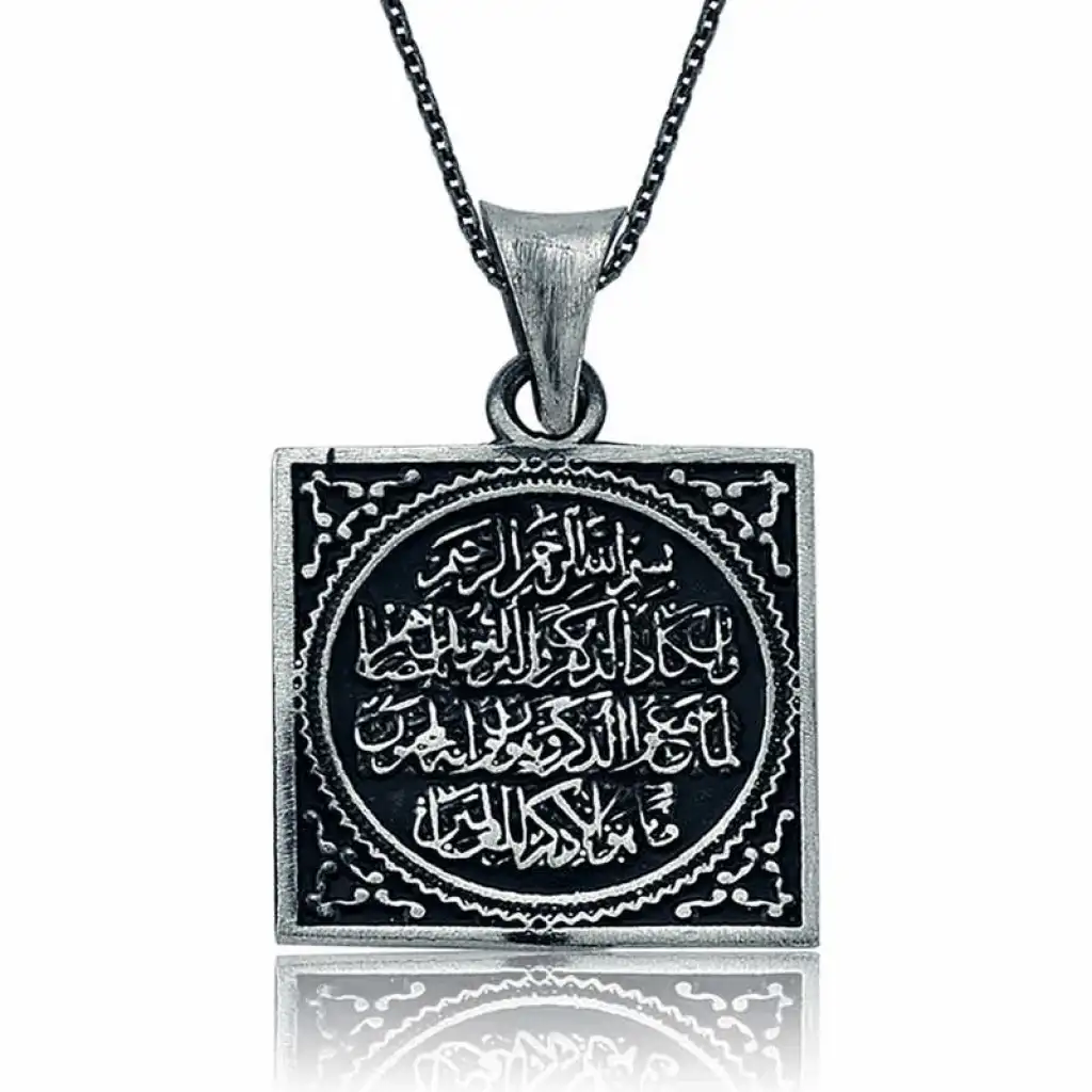 Nazar bakış demektir ve her canlıya nazar değebilmektedir. Bu nazar hastalığından korunmak, şifa bulmak için nazar duası okunur. Bu maneviyatı yüksek kolye; doğum günü hediyesi, sevgililer günü hediyesi veya annelere hediye olarak özel günlerde tercih edilebilecek mükemmel bir seçenektir. Nazar duası kolye modeli 925 ayar gümüşten imal edilmiştir. Gümüş üzerine oksit kaplama yapılmıştır. Oksit kaplama yapılan gümüş kolyeler parlaklığını uzun süre muhafaza eder ve kararması gecikir. Tüm gümüş bayan kolyelerde olduğu gibi gümüş nazar duası bayan kolye de el emeği ile üretilmiştir. Gümüş ve değerli taşlar nedeniyle belirtilen ortalama ürün ağırlığında ± %10 sapma olabilmektedir.